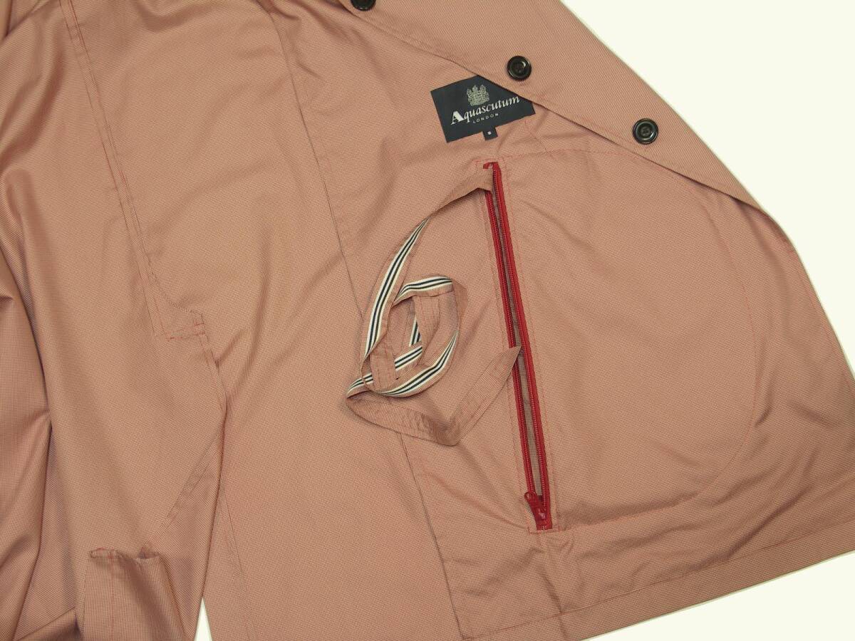 英老舗コートメーカー [ Aquascutum ] らしい、撥水処理された柔らかなポリエステル素材仕立て、季節の変わりめには最適の、着脱出来るフード付き上質レインアイティム/パッカブル(Packable)コートです。
