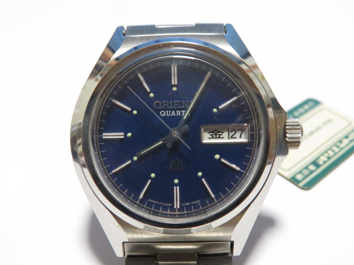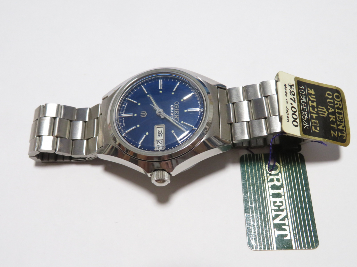 12月6日までの限定値下げです。 最終値下げになります。 期間終了後は元の価格27,800円に戻ります。 貴重なオリエント オリエントロンです。 デッドストック品になります。 電池交換済みで稼働中です。 デッドストックの長期自宅保管品のため擦り傷や汚れ経年劣化等はありますので神経質な方の入札はお控えください。 現状渡しになります。 他にもクリストロンなど出品していますのでよろしければ見てください。 ※いやがらせ入札が続いているので、新規や評価の悪い方の入札・落札は取り消します。 ※落札後24時間以内の開始連絡と2日以内のお支払い、商品到着後24時間以内の受け取り連絡ができる方の入札をお願いたします。 ※埼玉か関西地区からの発送となります。 ※発送できない期間については自己紹介欄でお知らせしますのでご確認ください。 | |||