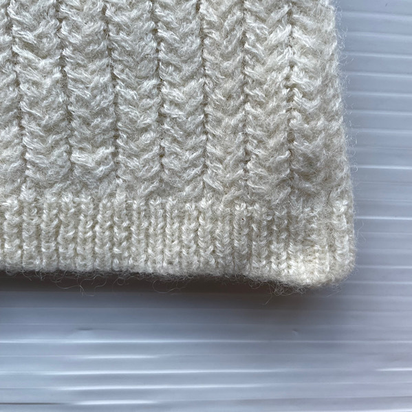 ある程度厚みのある仕様ですが、編み目から少し透ける感じがあります。