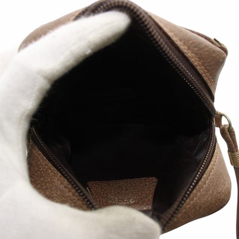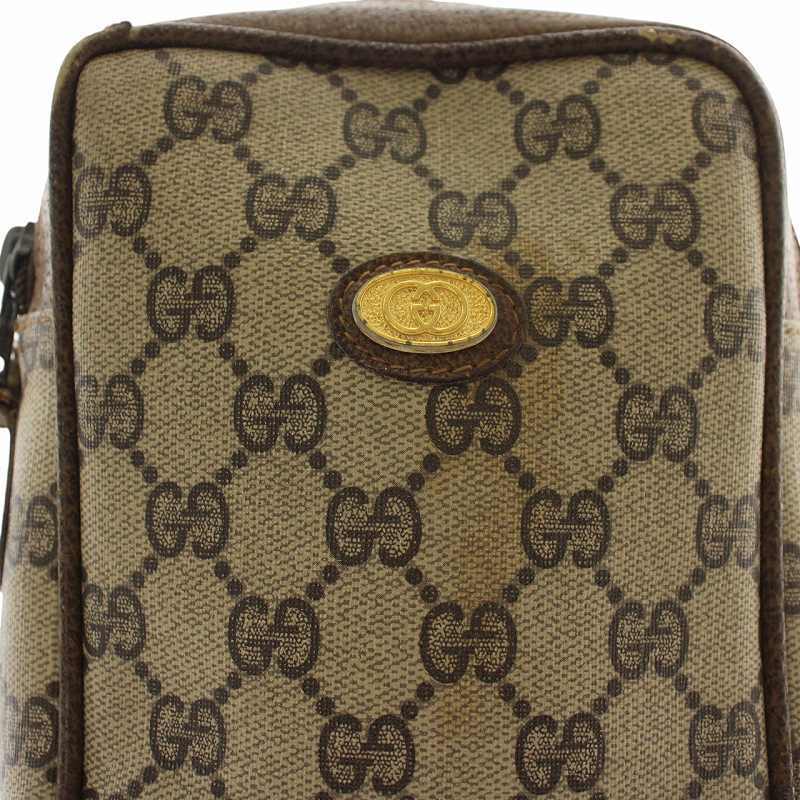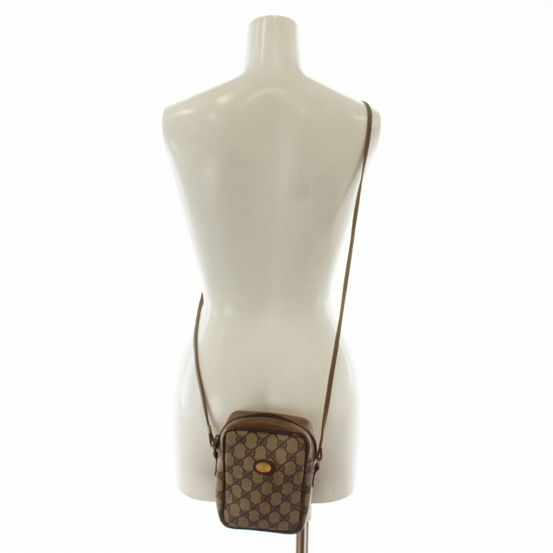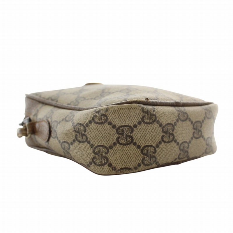 グッチ GUCCI ショルダーバッグ ポシェット ミニ PVC レザー GGスプリーム 総柄 インターロッキング ロゴ ベージュ 茶色 ブラウン