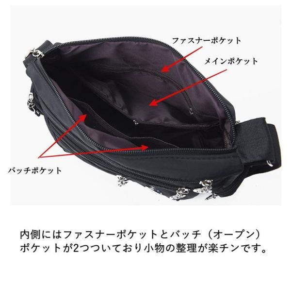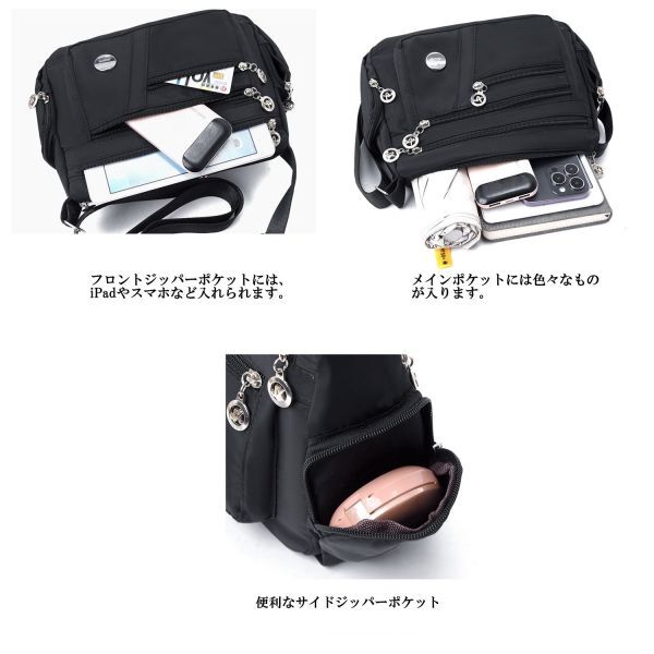 • 斜めがけや肩掛けが可能で、シーンに応じてスタイルを変えることができるのも大きな魅力です。撥水加工が施されているため、急な雨にも安心。