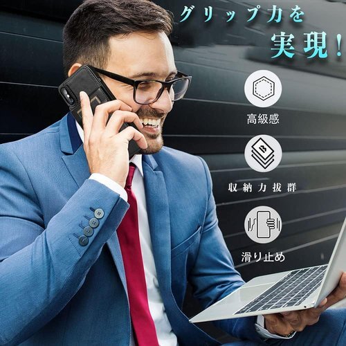 WHITESUGAR iPhone X ケース 手帳型 本革感 おしゃれ iPhone XS ケース 手帳型 本革感 カード収納 メンズ スタンド機能付き 財布型 便利 高級素材 高級PUレザー フラップ式 カードポケット 上質な手触り 全面保護 最新デザイン 1810