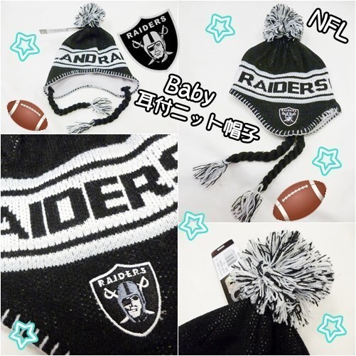NFL レイダース ロゴ 耳付 ボンボン付き ニット帽  ベビー クラブチームキャップ