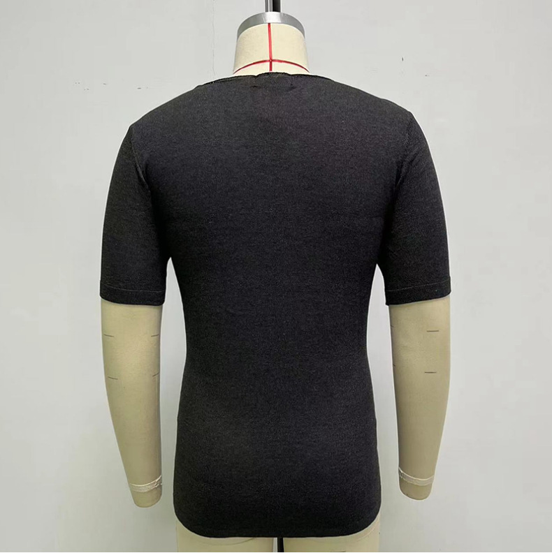 サマーセーター ニットTシャツ サマーニット トップス カットソー カジュアル 半袖ニット メンズ ブラック 3XL