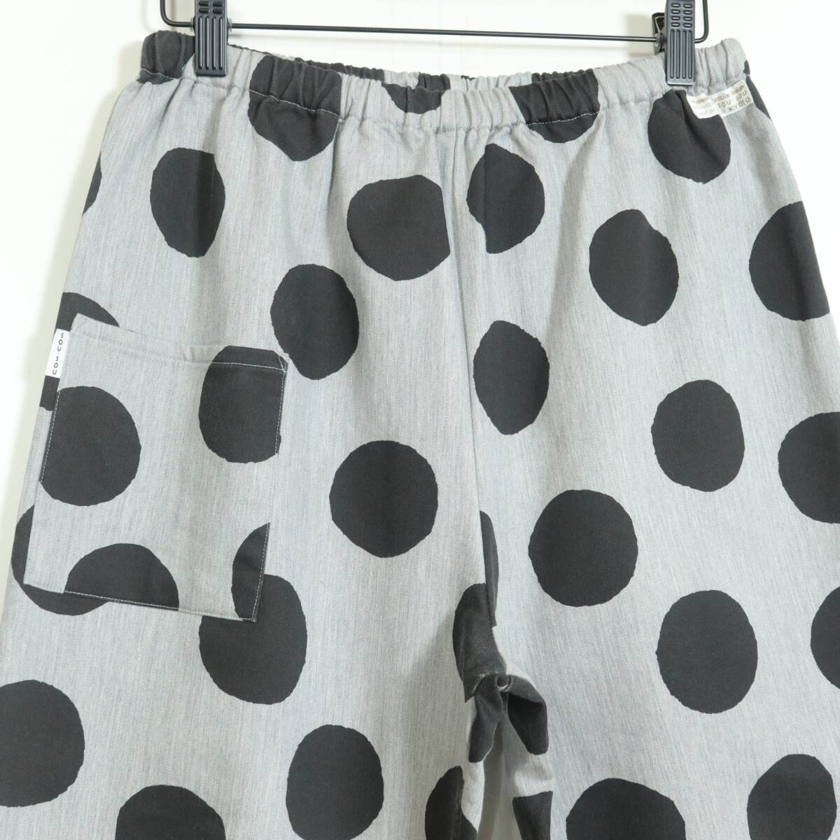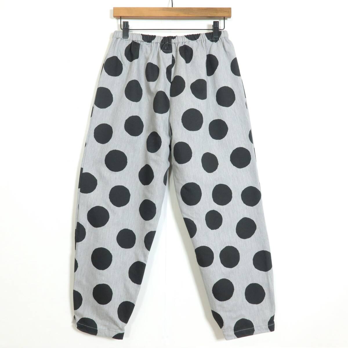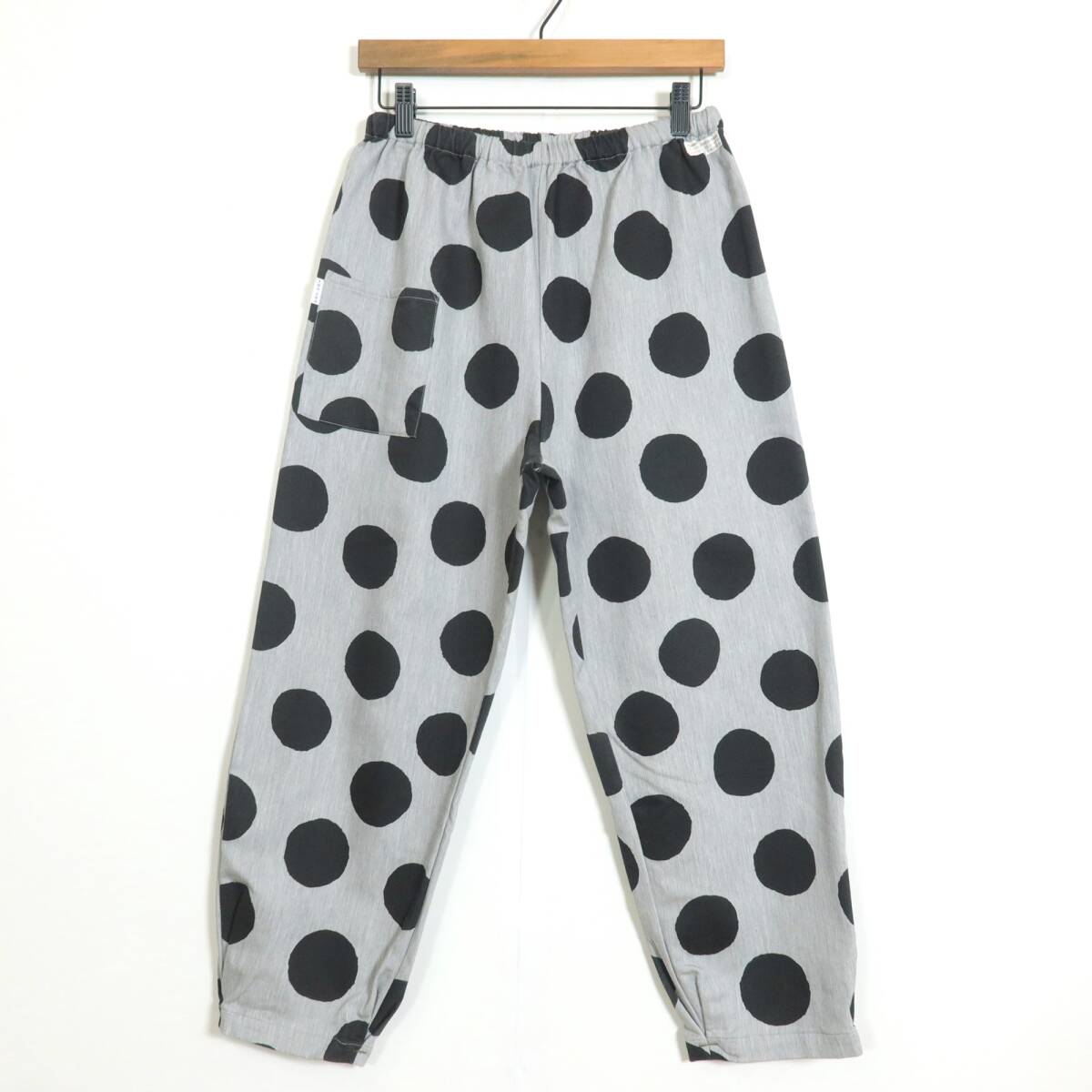 商品説明 | 【実寸約】ウエスト66~ヒップ100股上32股下59太もも幅31(cm) 【サイズ表記】 なし。実寸をご参照くださいませ。 【素材】 綿83ナイロン15ポリウレタン2 【状態】普通の使用感のあるお品物 スレ感少々あり 【デザイン】ライトグレー×黒系 バイカラーのロングパンツです。 ウエスト総ゴムで着心地もバツグン♪ 大きなドット柄/ポケットあり |