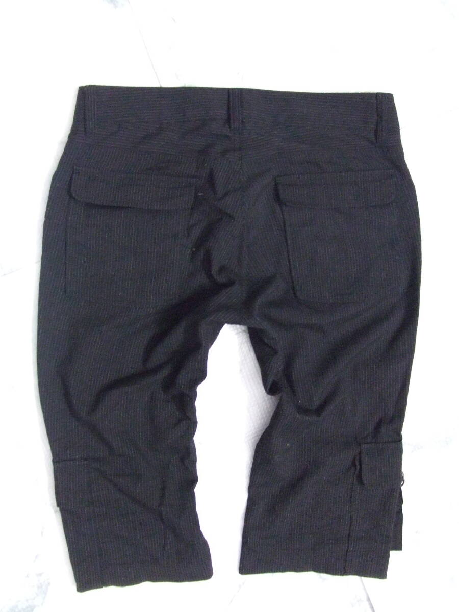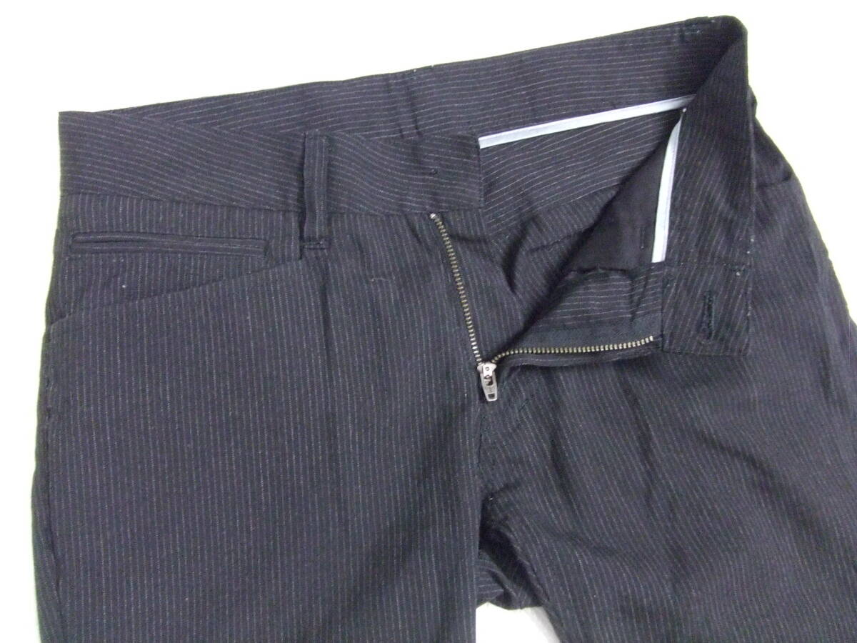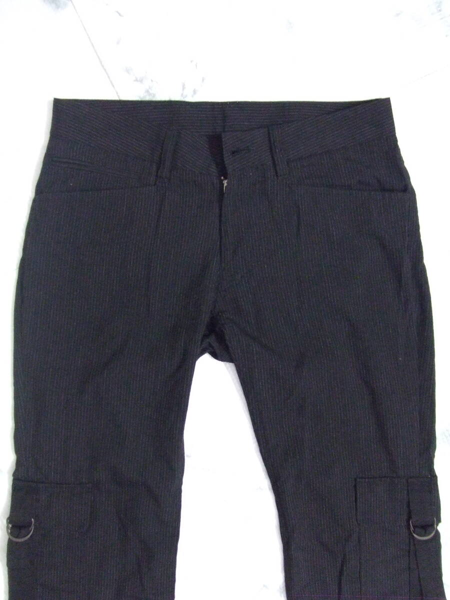☆カスタムカルチャー(CUSTOM CULTURE)ストライプクロップドパンツです!! ☆ウエストのボタンが紛失していてありません。ご了承ください。 ☆表記サイズは40でウエスト74cm、股上(前部分)21cm、股下40cm、腿幅(股下0cm地点)25cm、裾幅19cm(素人採寸ですので参考程度でおねがいします) |