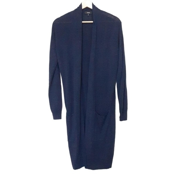 セオリー theory カーディガン サイズS - リネン、リネン ネイビー レディース 長袖/ロング丈 美品 トップス