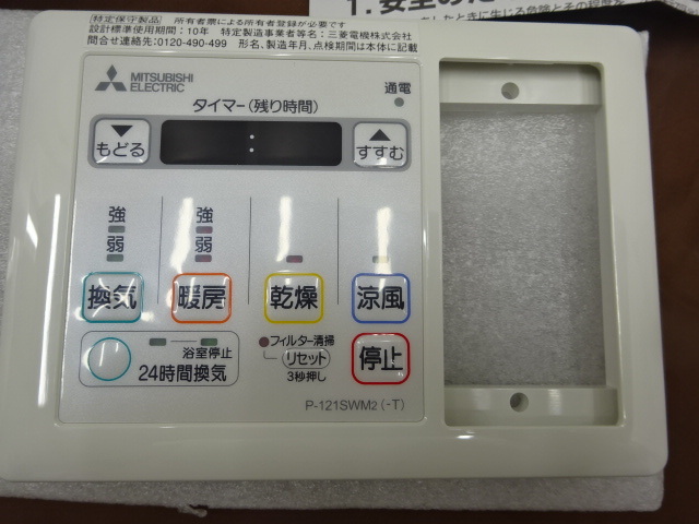 【店頭展示未使用品】 三菱  コントロールスイッチ  三菱電機 P-121SWM-T バス乾燥・暖房・換気システム「セパ」 / コントロールスイッチ