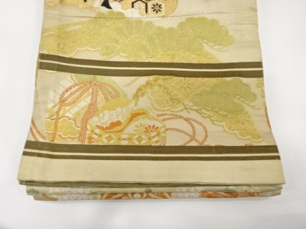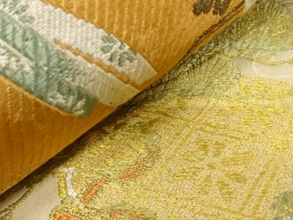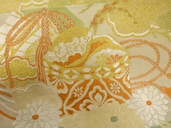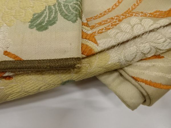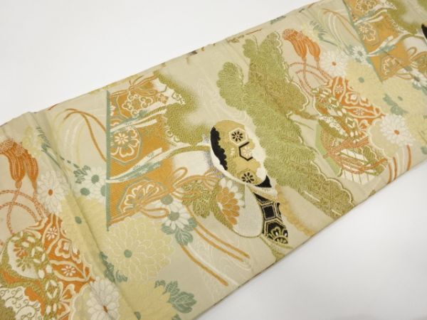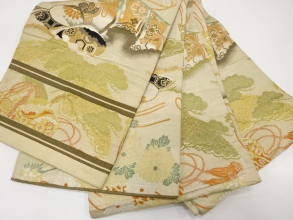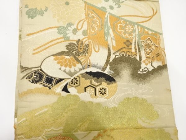 ys7434133; 几帳に貝桶・花模様織出し丸帯(材料)【アンティーク】【着】