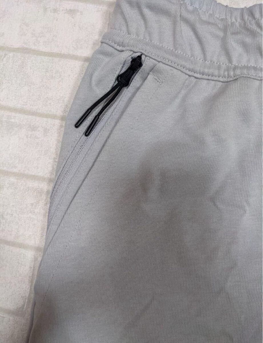 ウエスト総ゴム紐付き、両サイドにポケット、片方にチャックポケット1個あります。