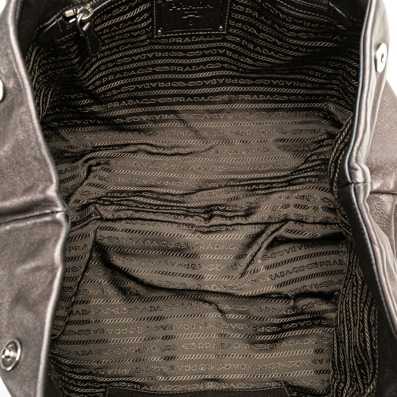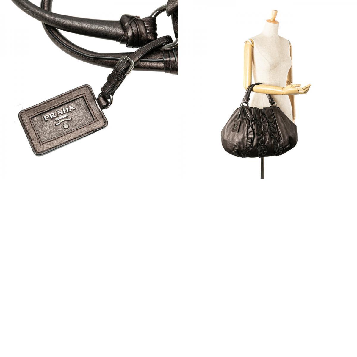 プラダ フリル ハンドバッグ ブラウン ブロンズ ナッパレザー レディース PRADA 【中古】