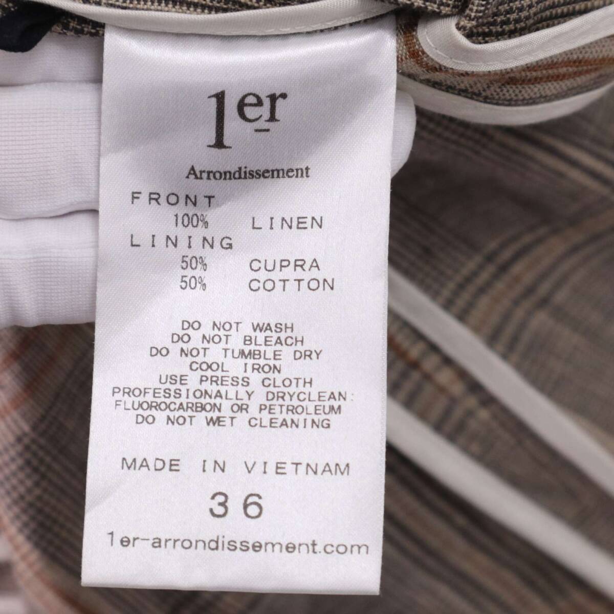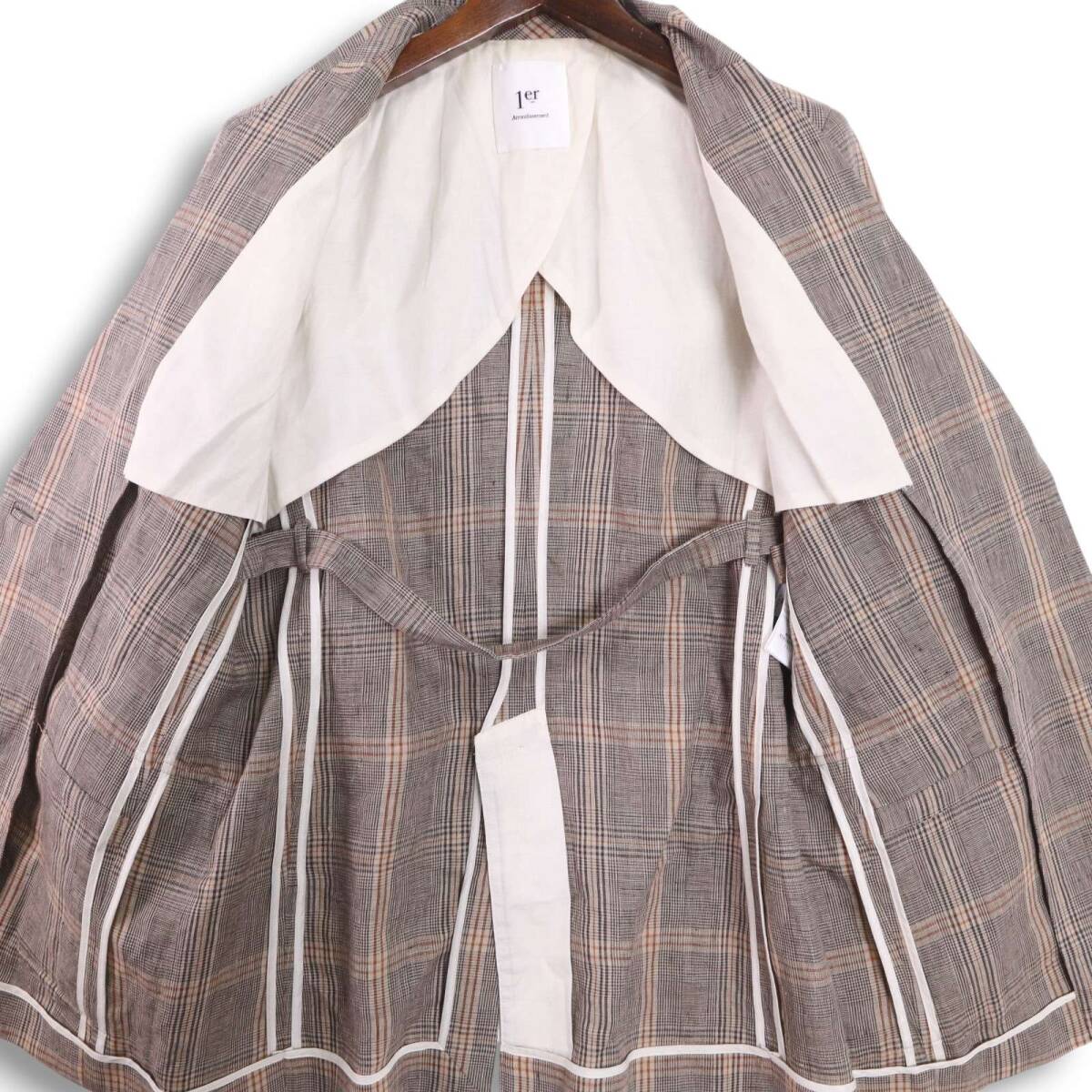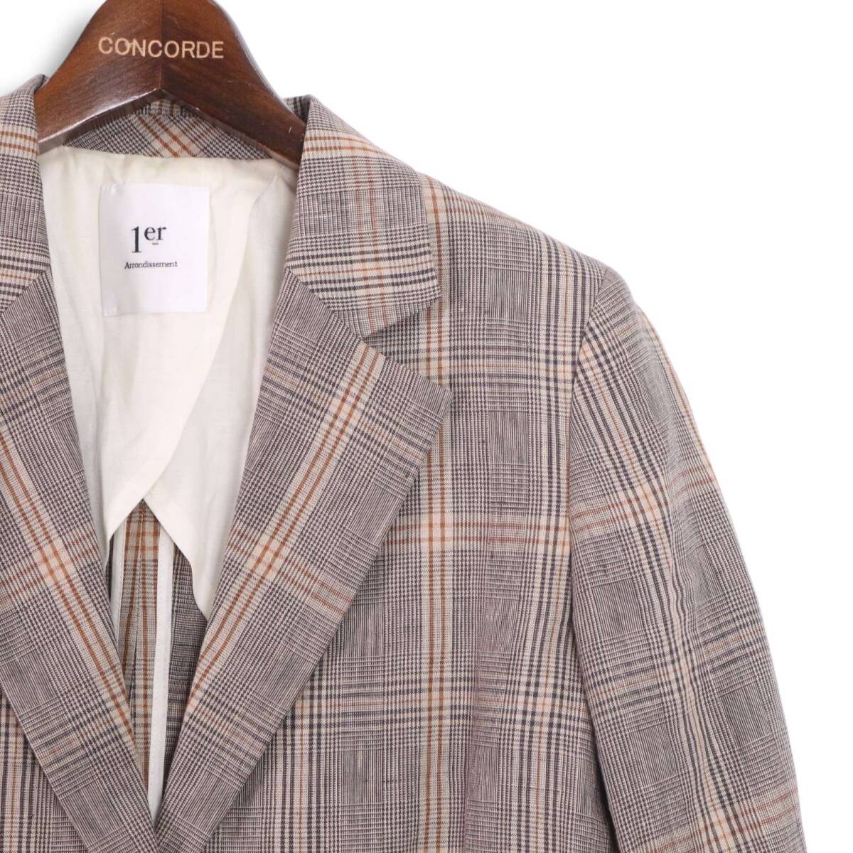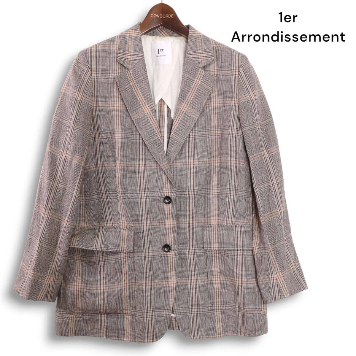 1er Arrondissement プルミエ アロンディスモン 春夏 麻100%♪ グレンチェック テーラード ジャケット Sz.36 レディース