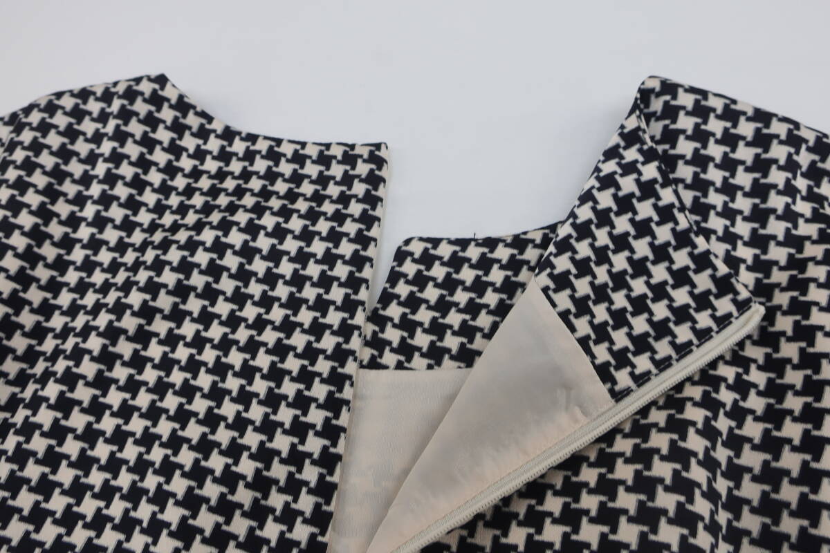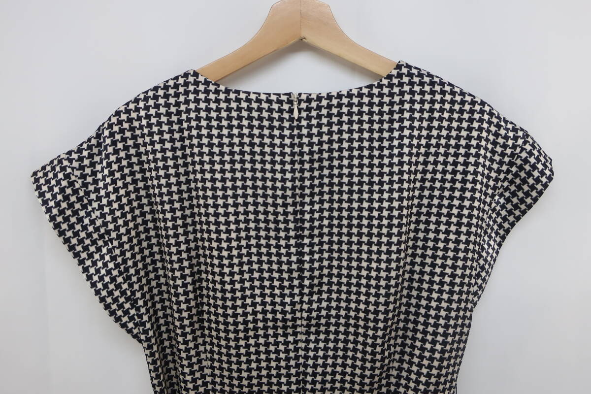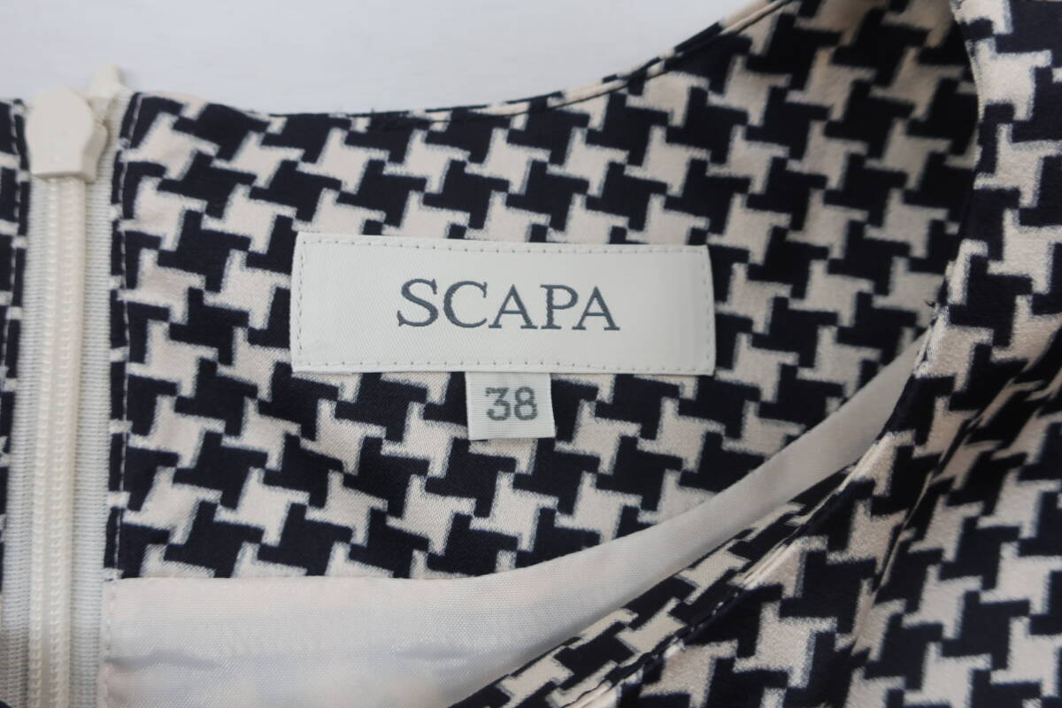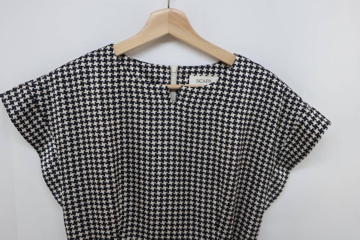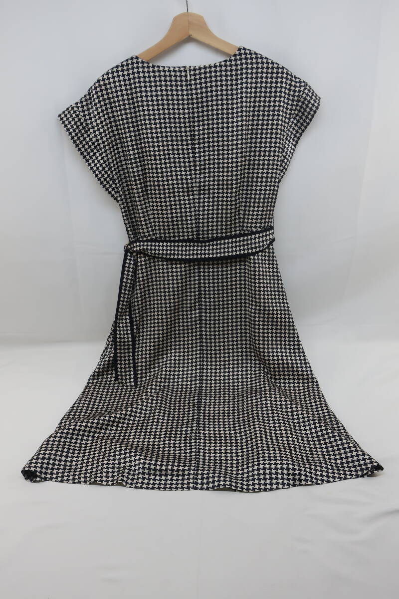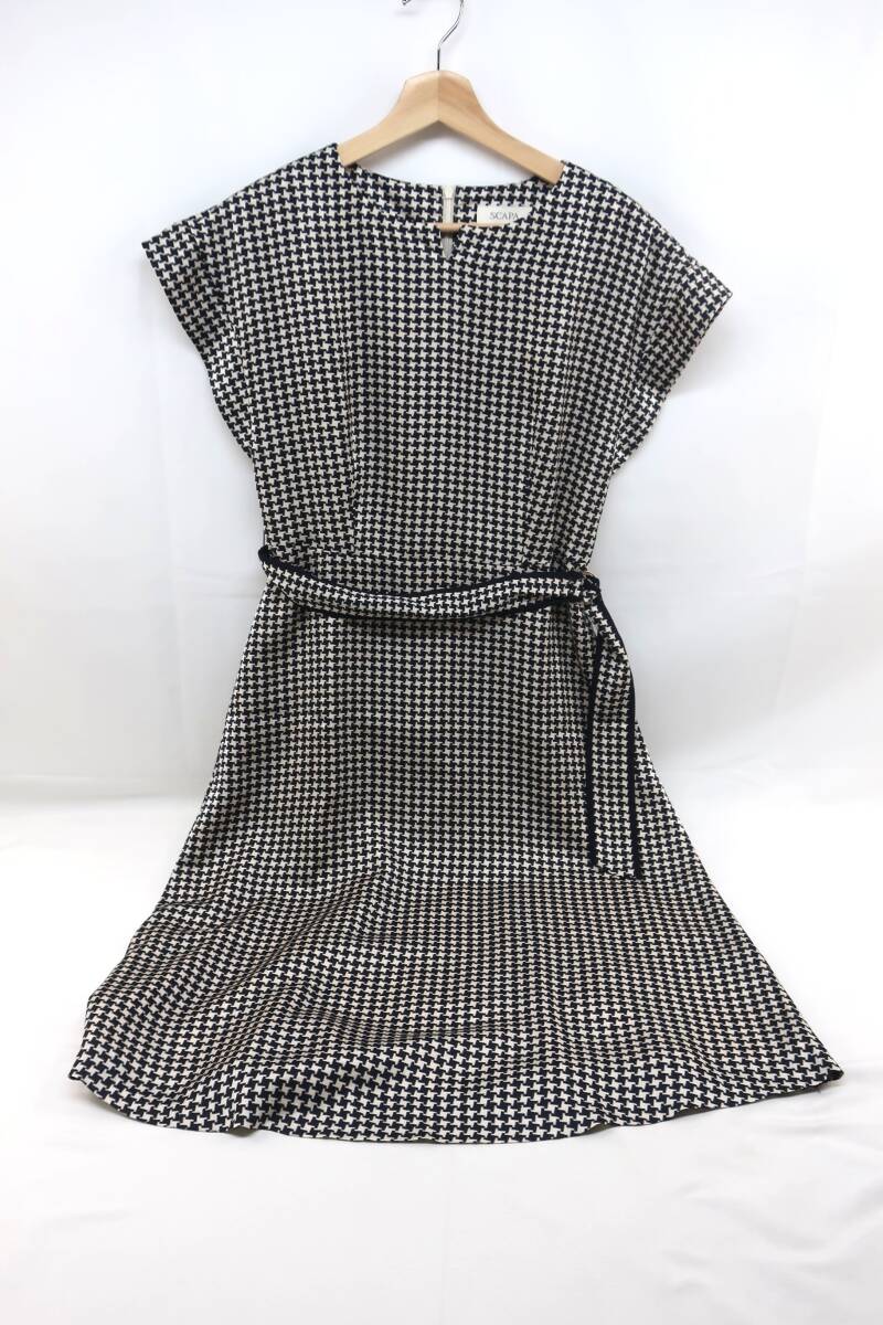 【送900円】9190 最終 SCAPA スキャパ スキッパーワンピース フレンチスリーブ 千鳥格子柄 38 ベルトあり ポリエステル100%