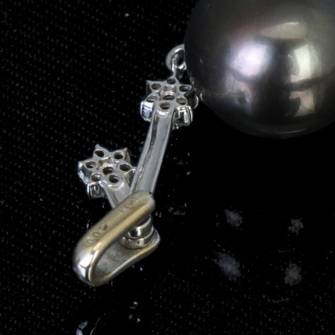 商品名 | ブラックパール ダイヤ ペンダントトップ K18WG d0.09ct 3.65g パール;11.96mm |