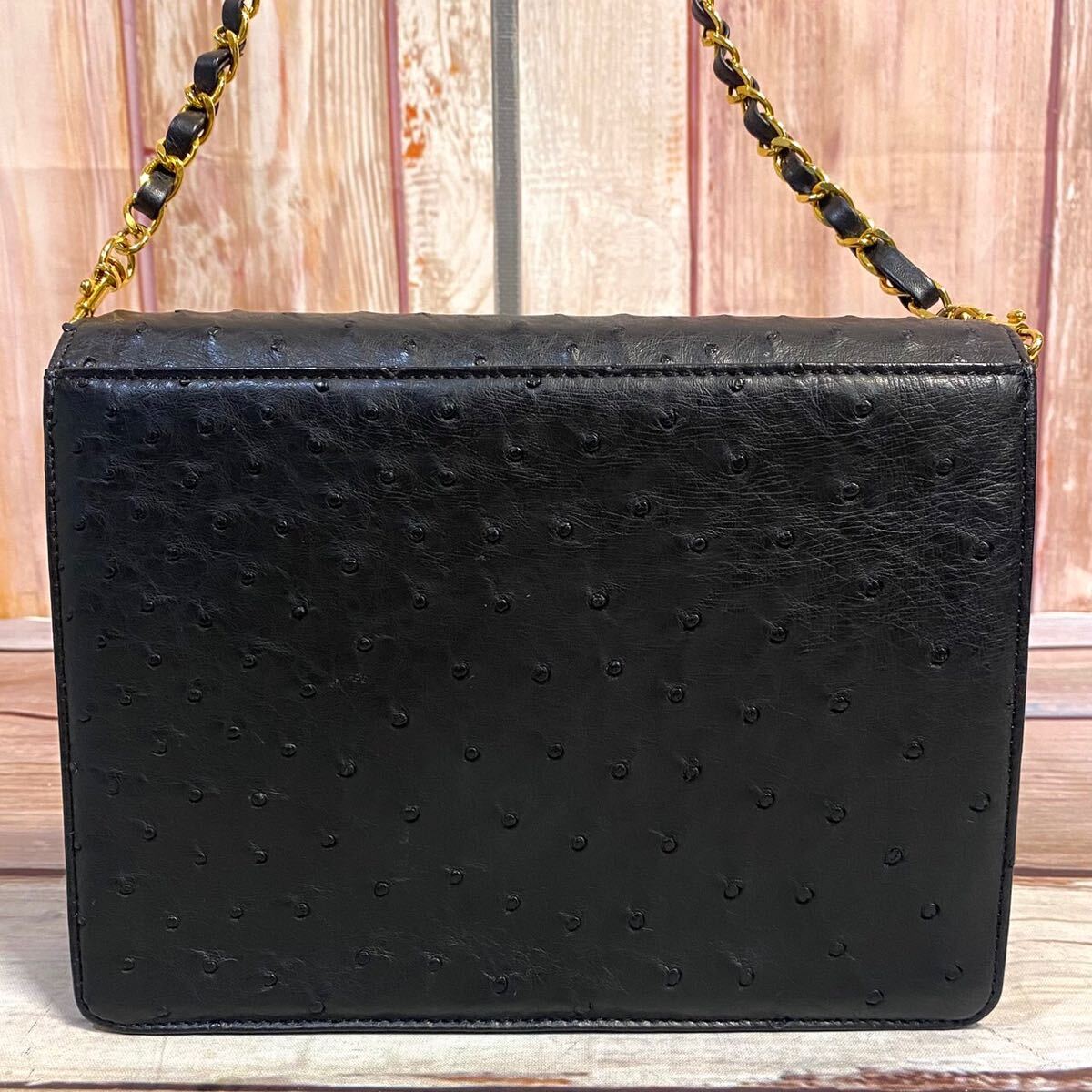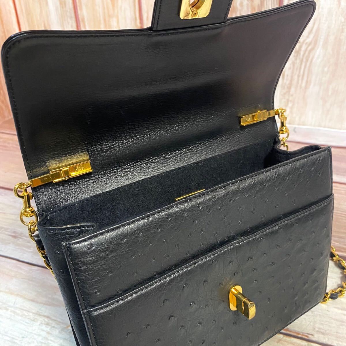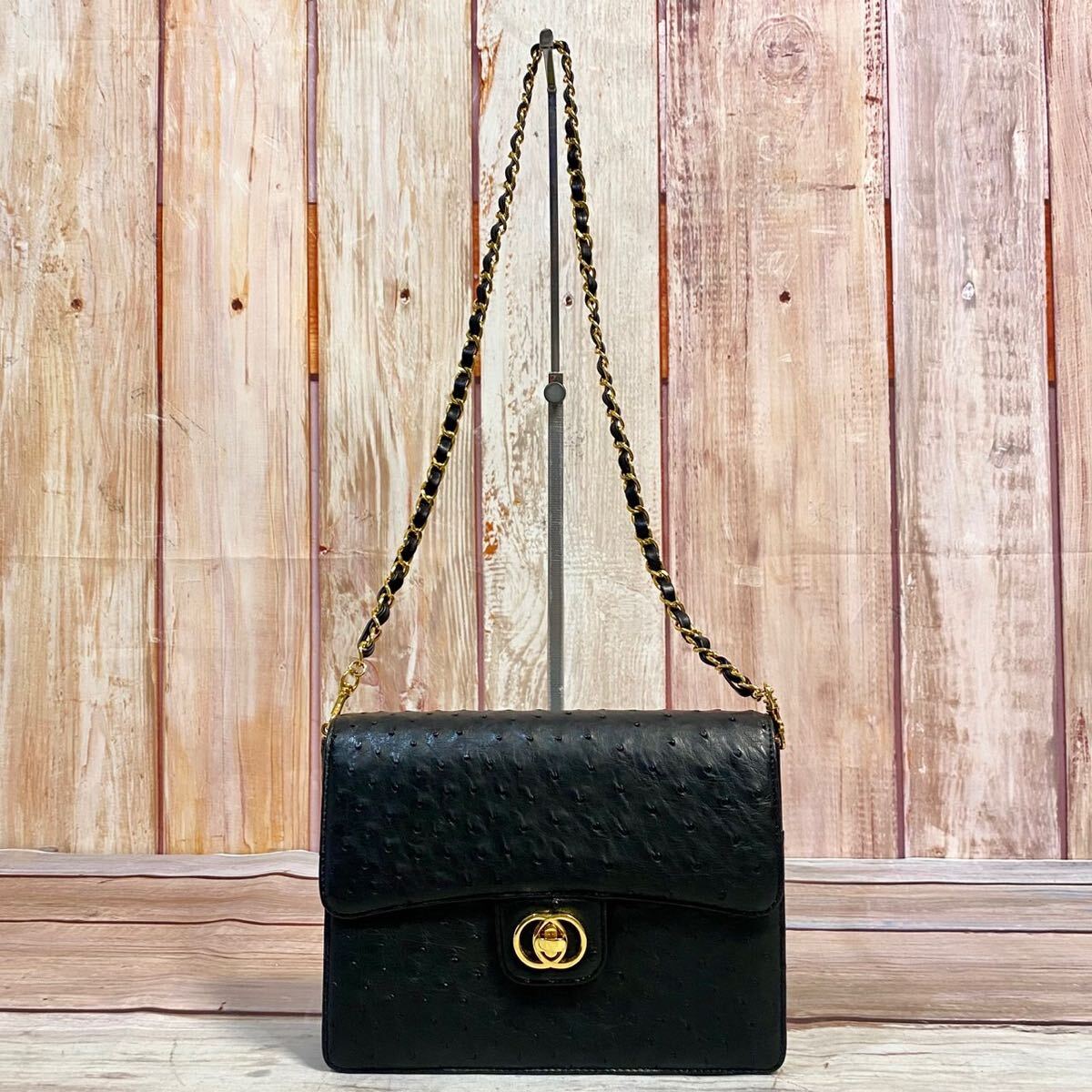 オーストリッチ チェーンショルダーバッグ ターンロック 肩がけ ブラック 本革 | |