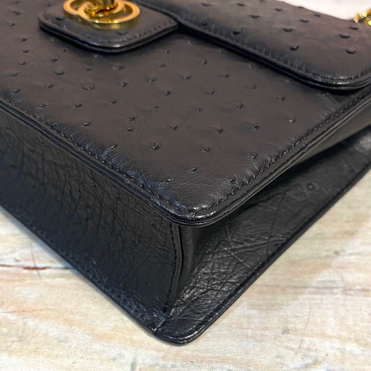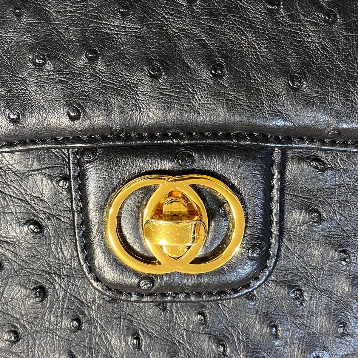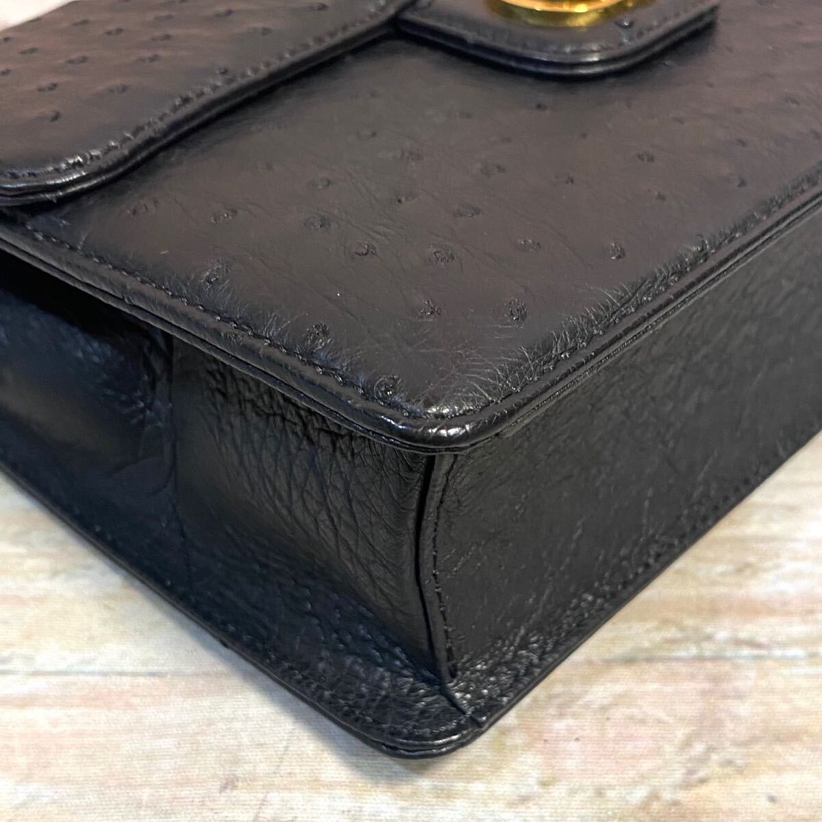 オーストリッチ チェーンショルダーバッグ ターンロック 肩がけ ブラック 本革 | |