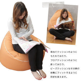 背当てクッションのようにもたれてみたり、フロアクッションのように座ってみたり、ビーズがその時の体勢にフィットするように形状を変えます。