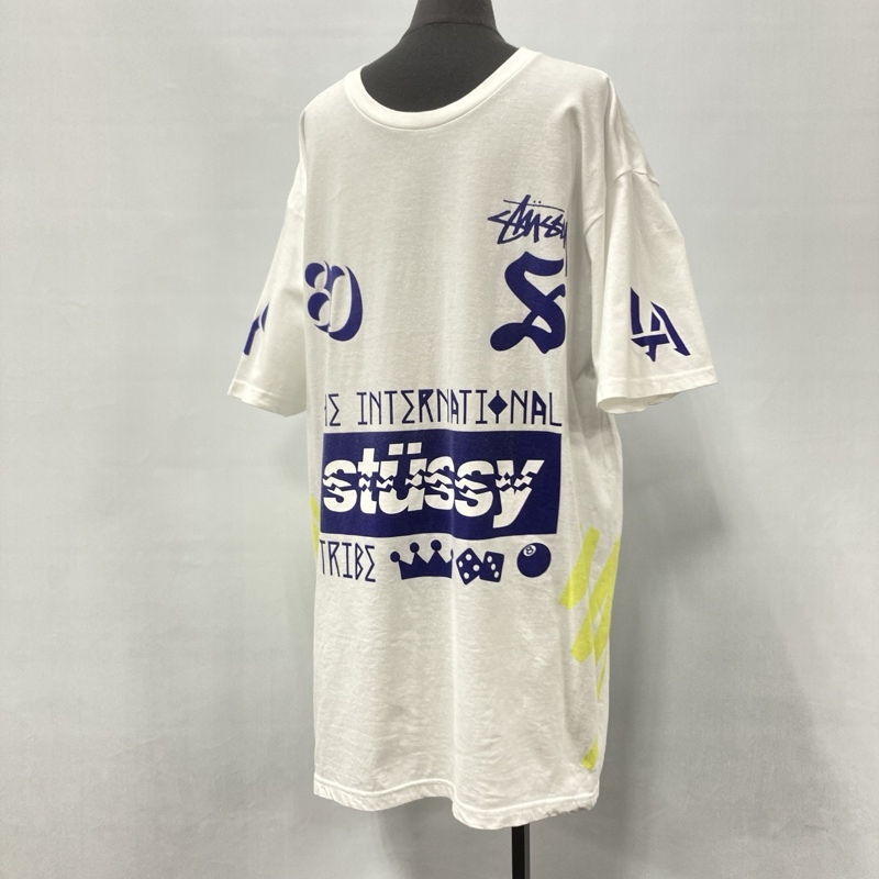 STUSSY/ステューシー/Playa IST S/S Tee/グラフィックプリント/ストックロゴ/SSリンク/クラウン/ダイス/8ボール/半袖Tシャツ/ホワイト/L