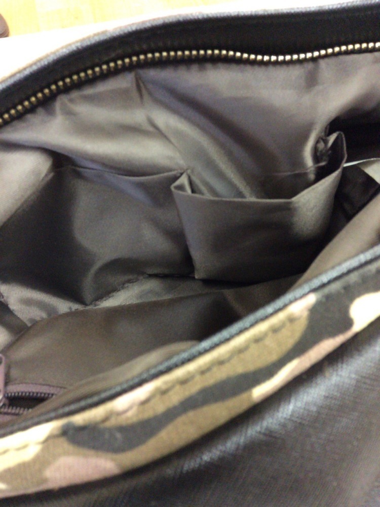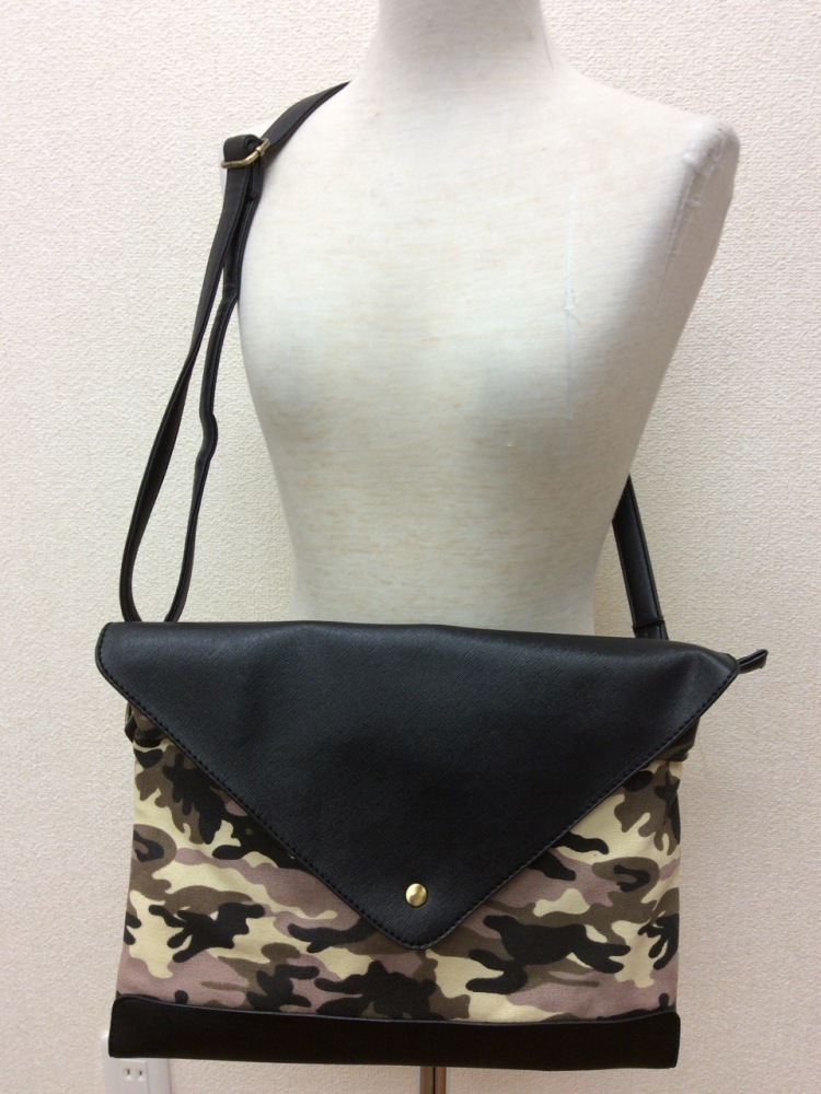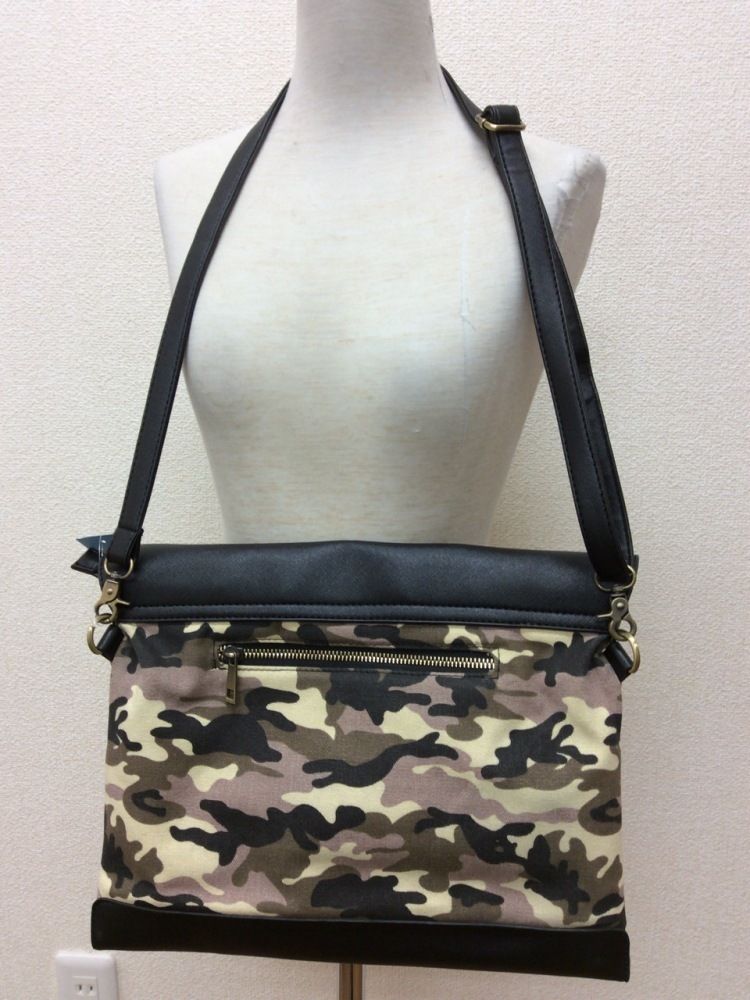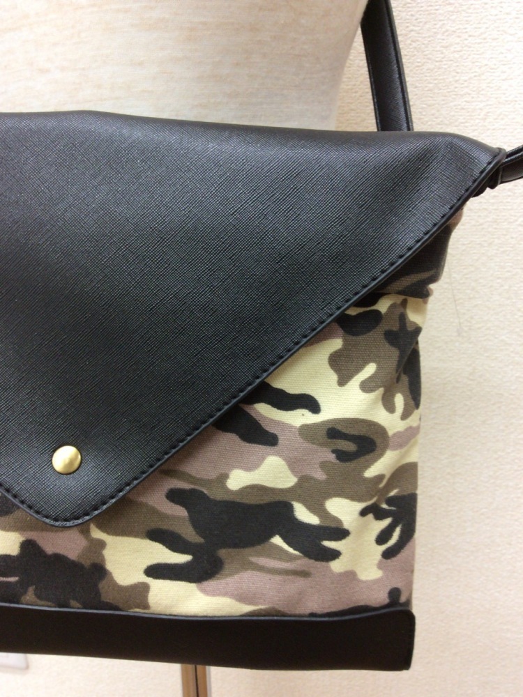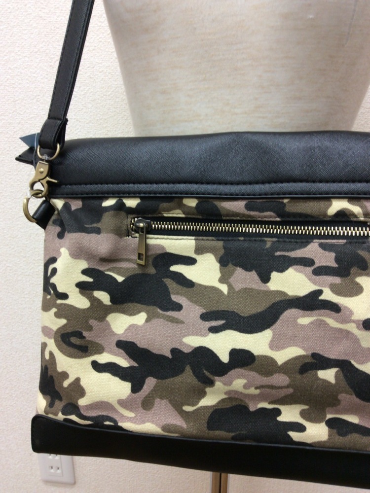 管理番号:99^130157 茶色、ベージュ系迷彩柄の四角いバッグ ショルダーストラップ 表示サイズ:なし 実寸(参考)