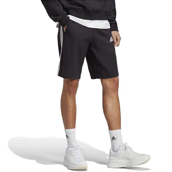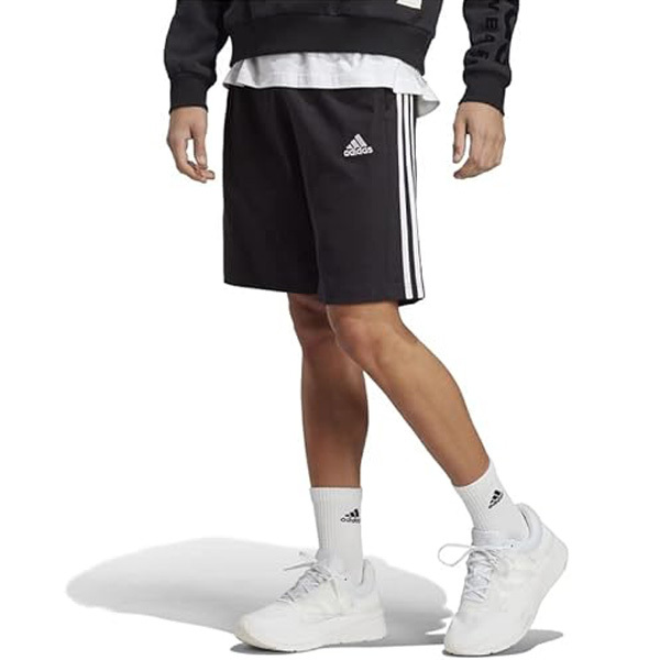 【新品/タグ付/正規品】Lサイズ adidas アディダス エッセンシャルズ シングルジャージー スリーストライプス ハーフパンツ ショーツ ショートパンツ 半ズボン ECQ42 ブラック/ホワイト メンズ