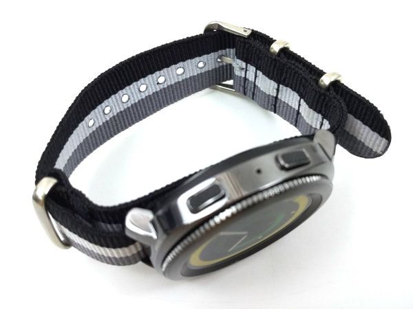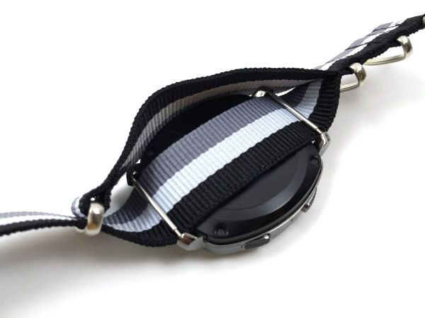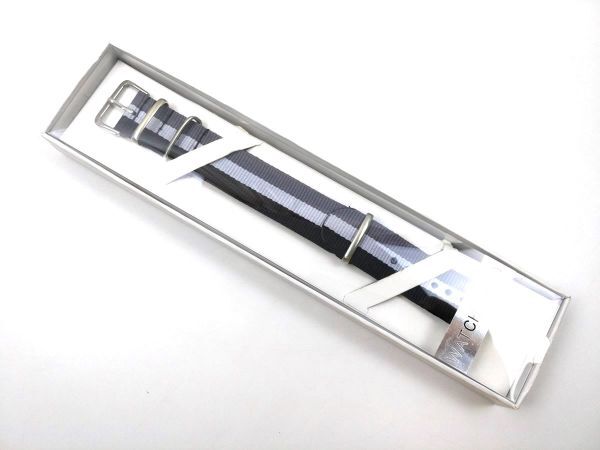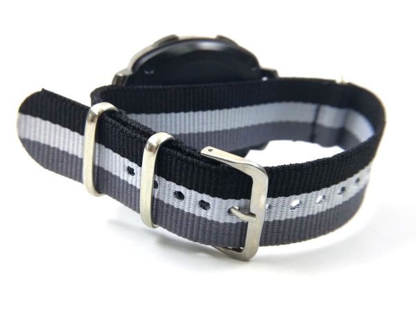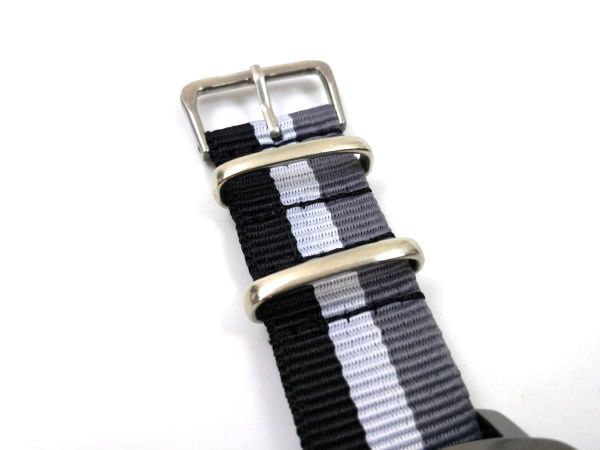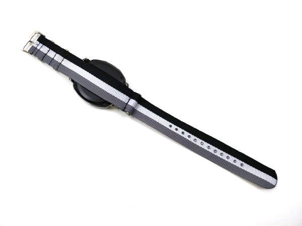 ナイロン製ミリタリーストラップ 布ベルト natoタイプ 腕時計 黒ライトグレー ストライプ 20mm