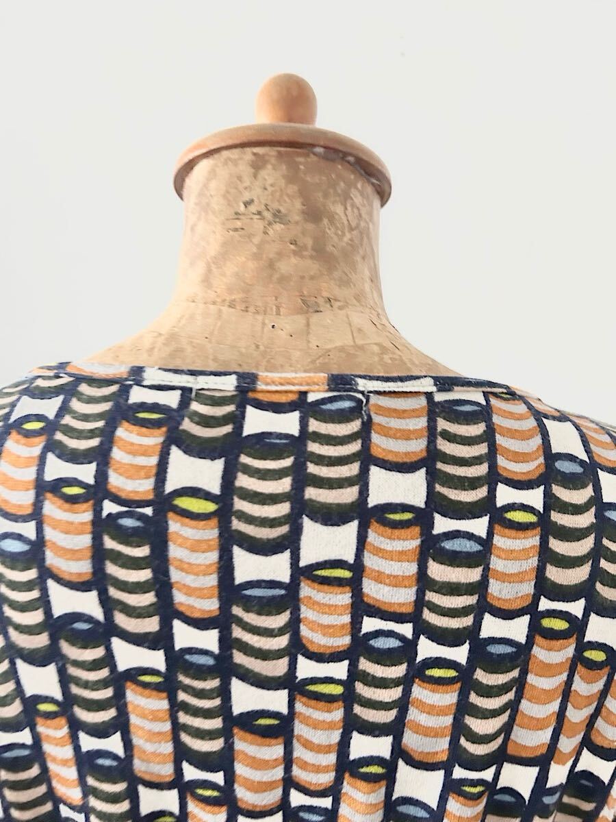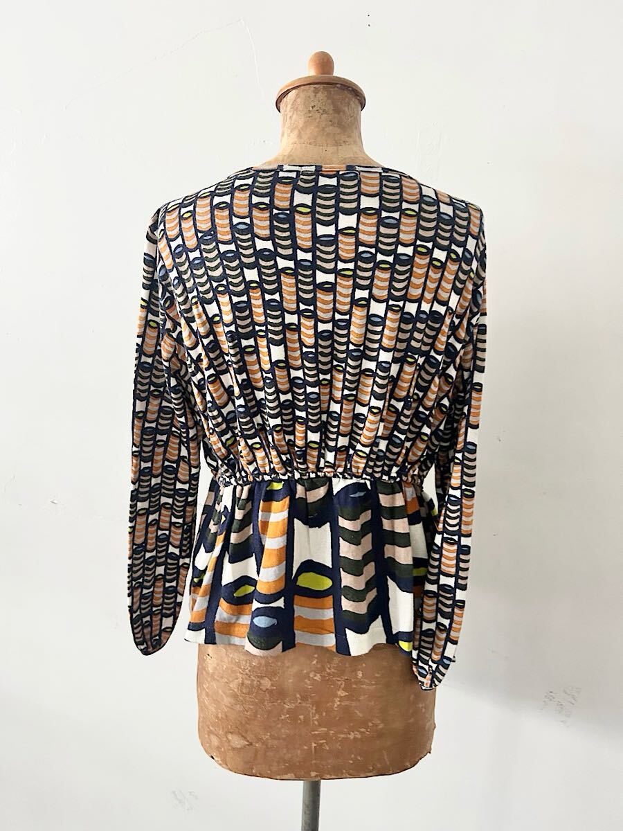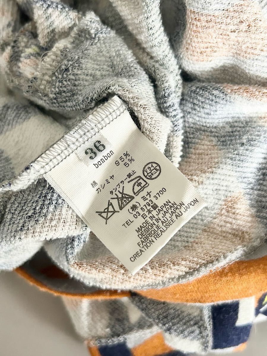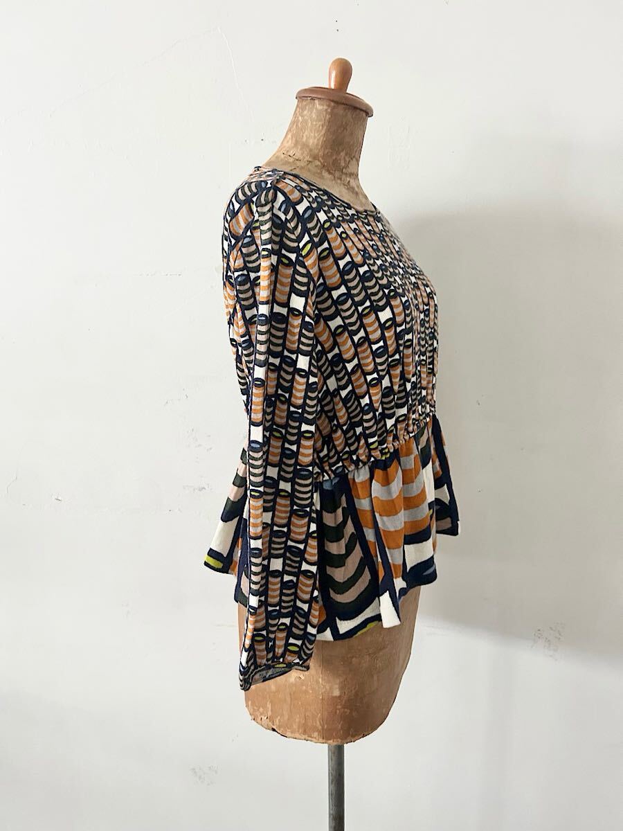 bonbonのテキスタイルのコットンカシミヤ裏毛プリントペプラムカットソーです。