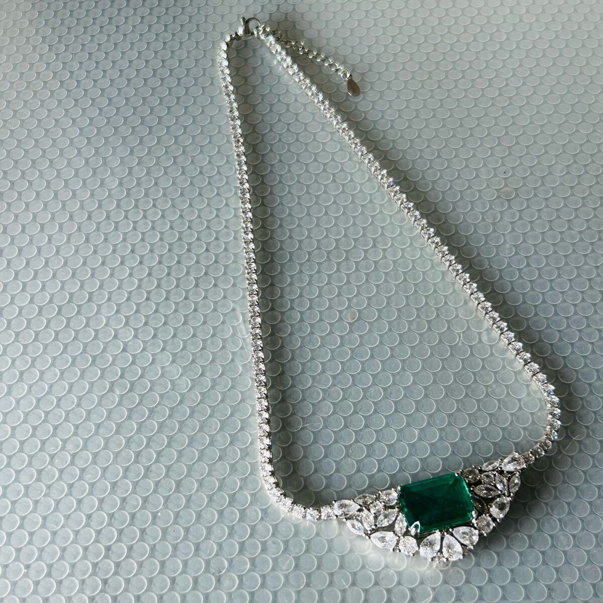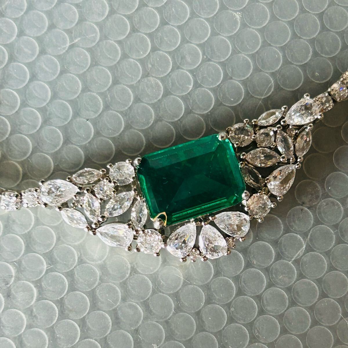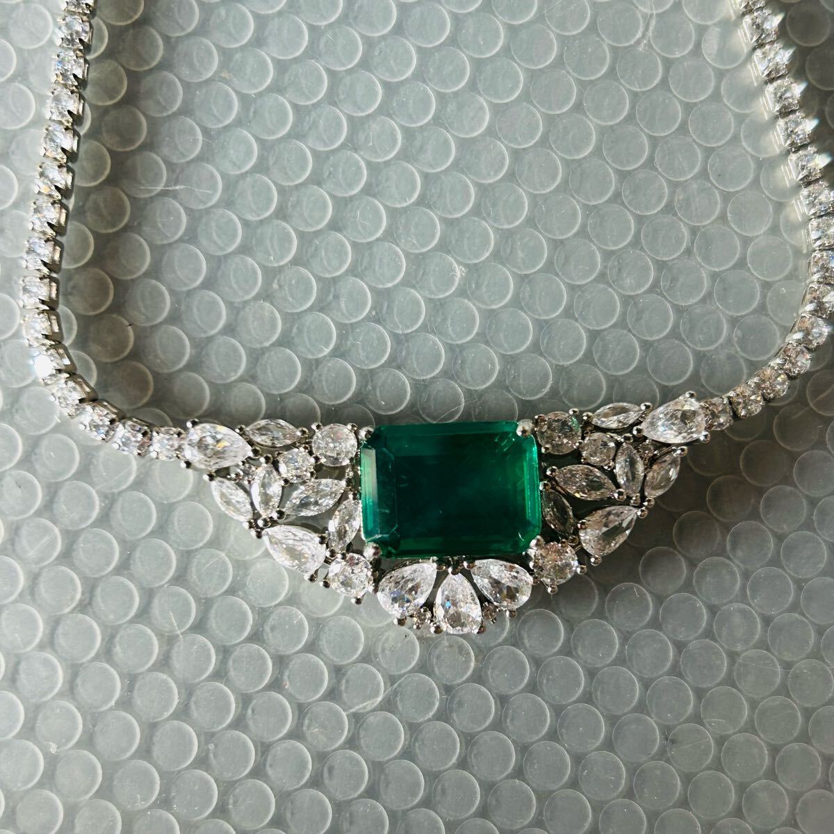 人工宝石エメラルド ペンダント53×18mm ネクスト長さ45センチ pt950 D灰