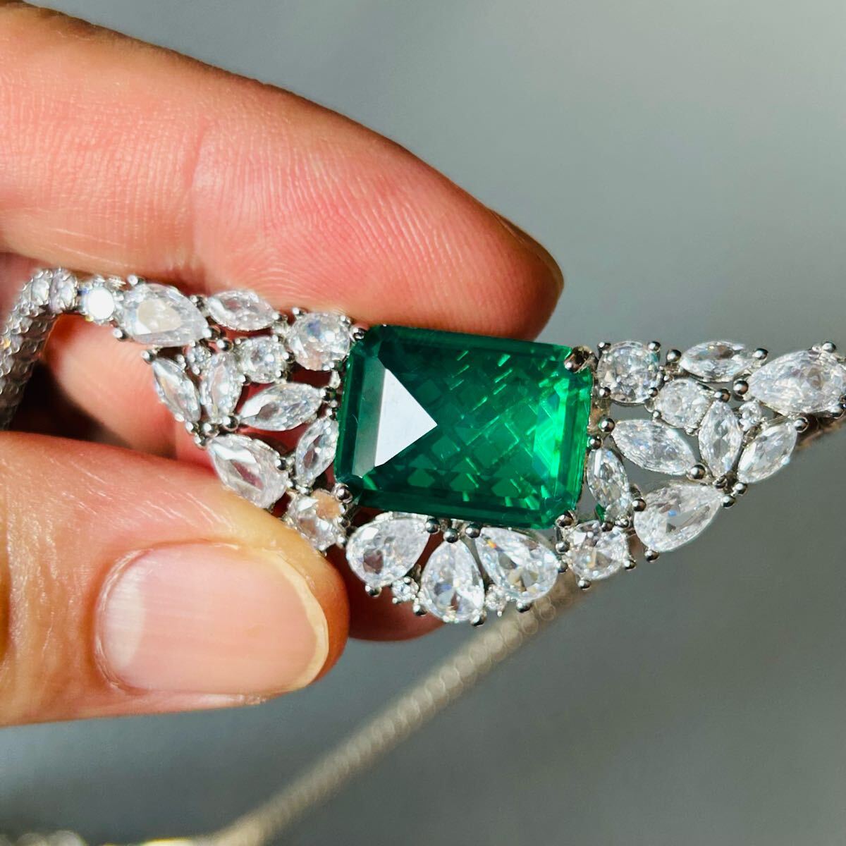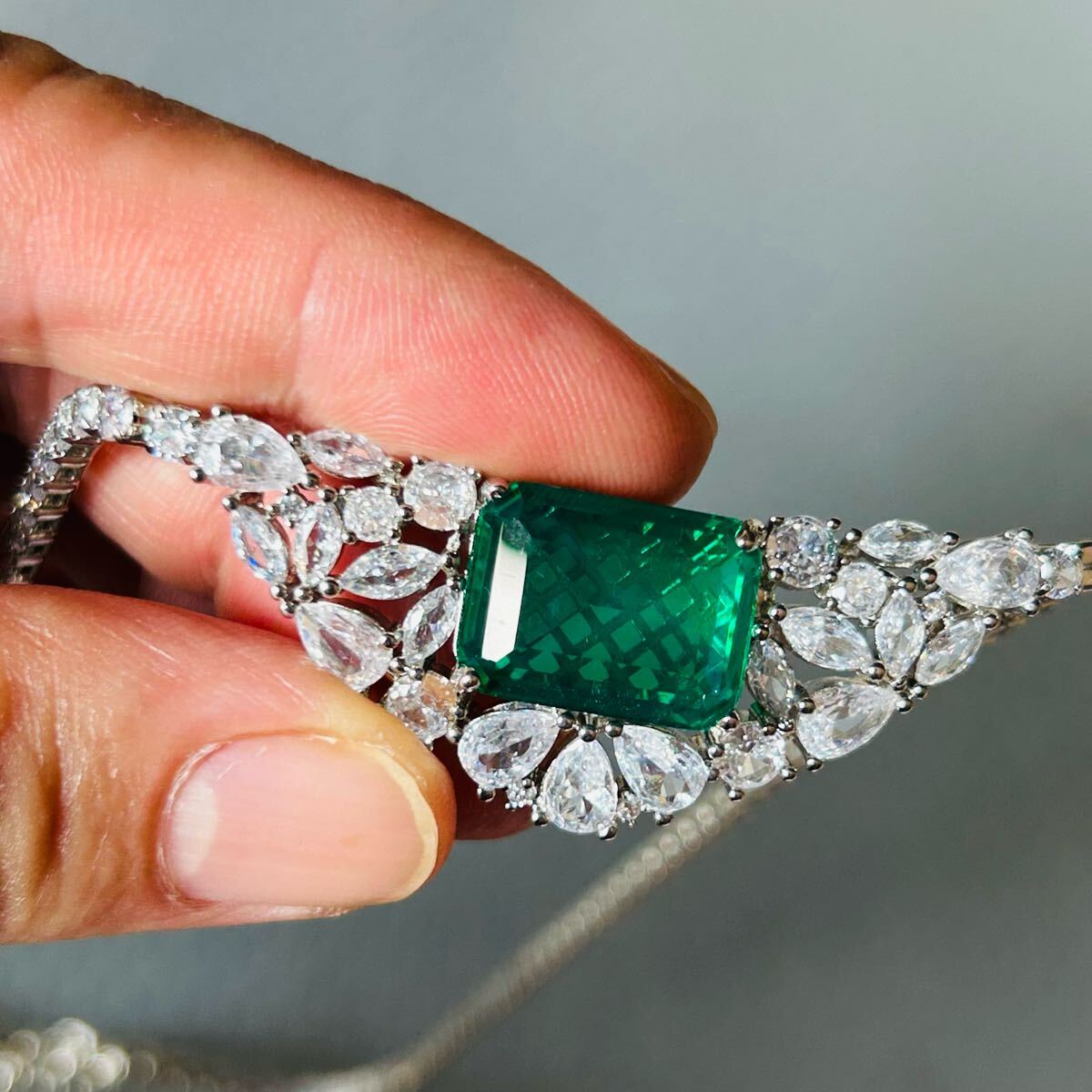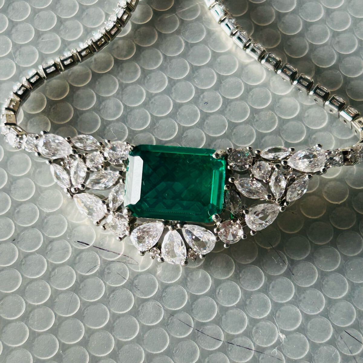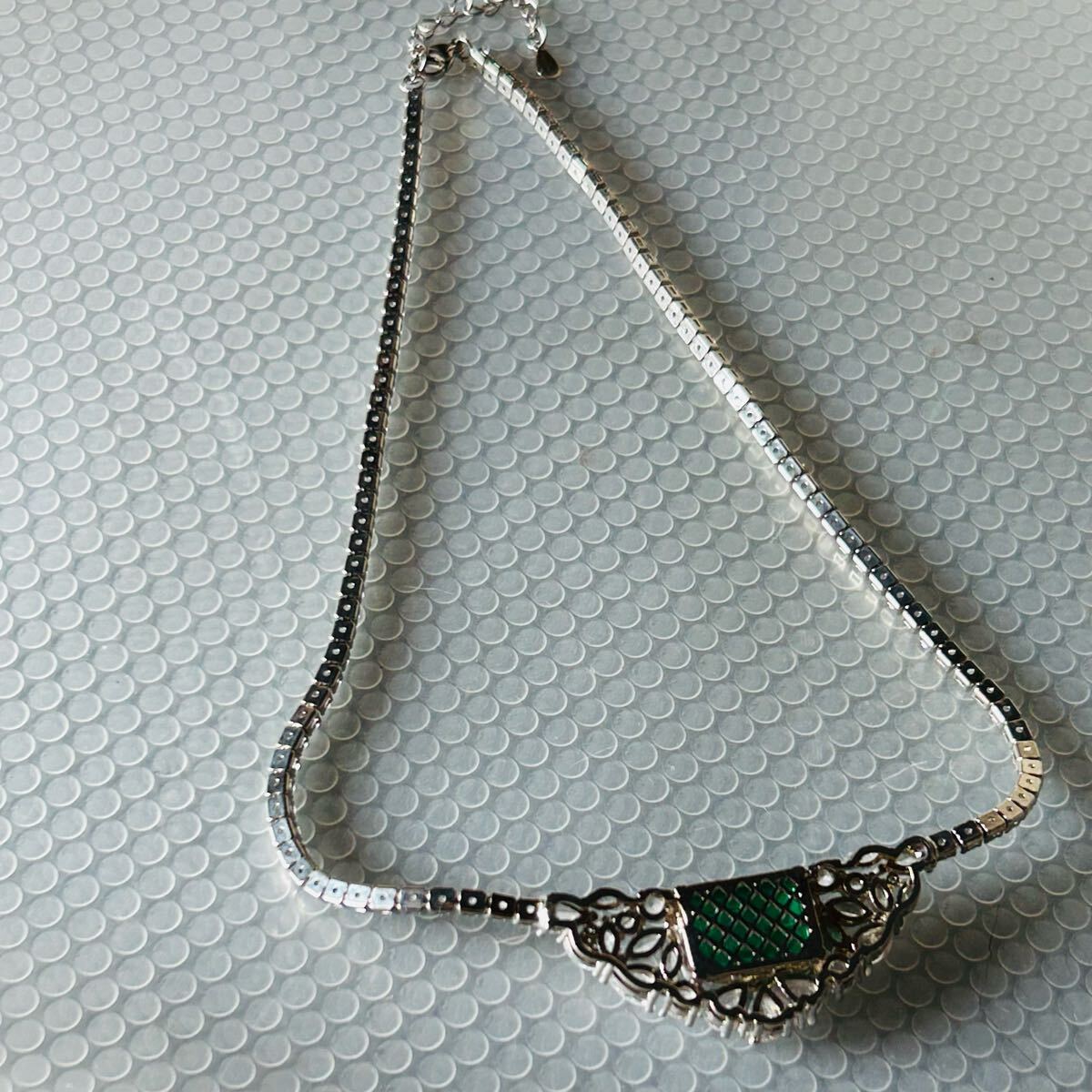 人工宝石エメラルド ペンダント53×18mm ネクスト長さ45センチ pt950 D灰