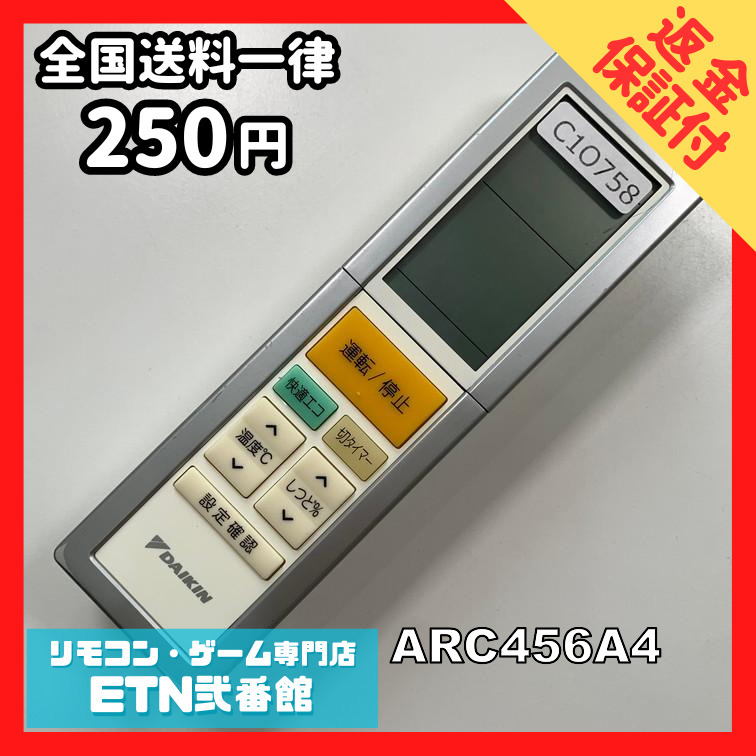 C1O758 【送料250円】エアコン リモコン / Daikin ダイキン ARC456A4 動作確認済み★即発送★ * 冷房 暖房