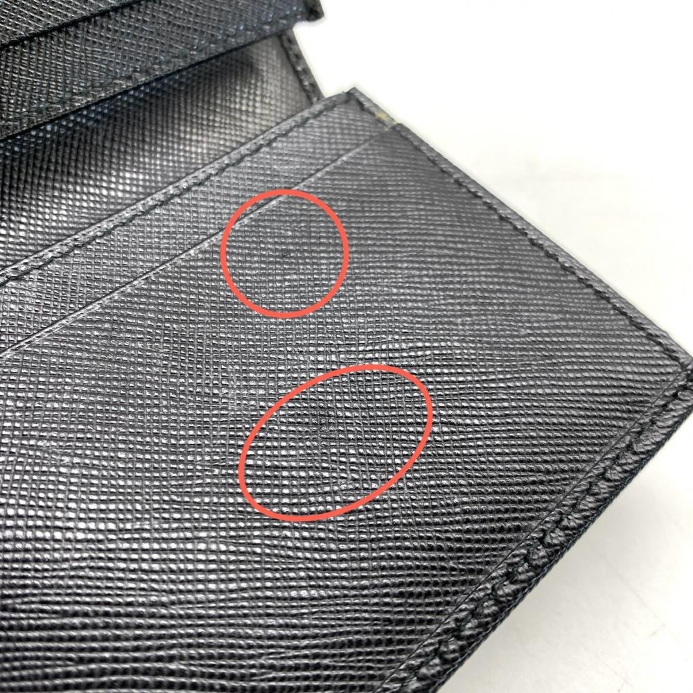 内側にやや小キズ、金具の小キズ、生地のヨレ(波打ち)がみられます。