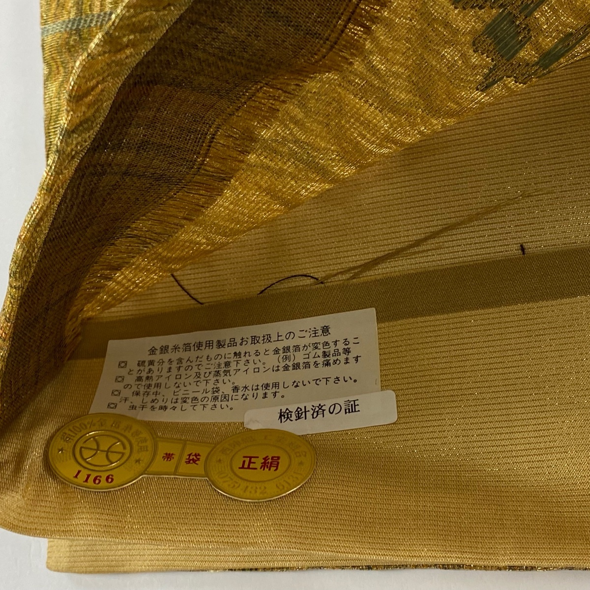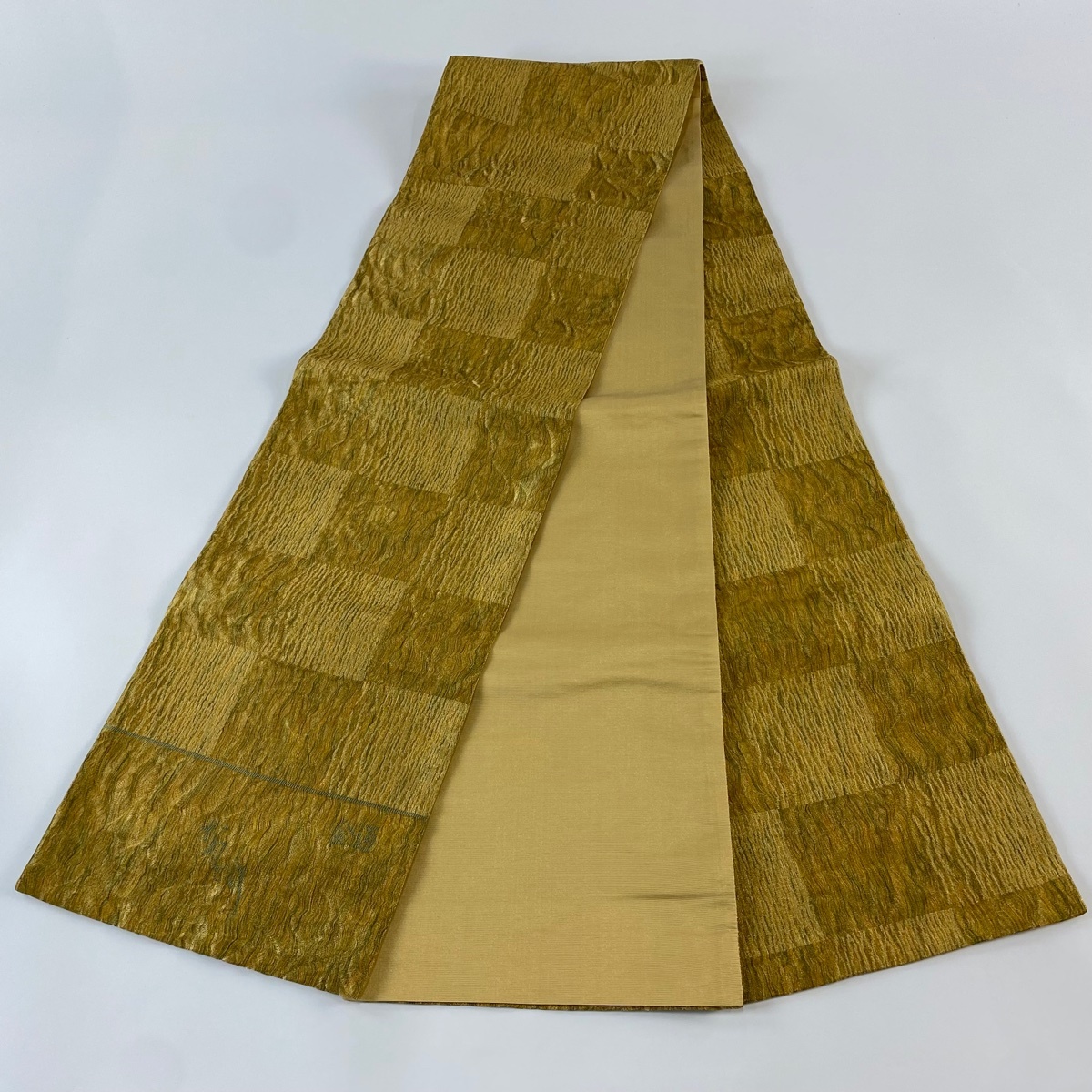 | 袋帯 美品 秀品 証紙 変わり市松 金糸 金色 全通 正絹 【中古】 |