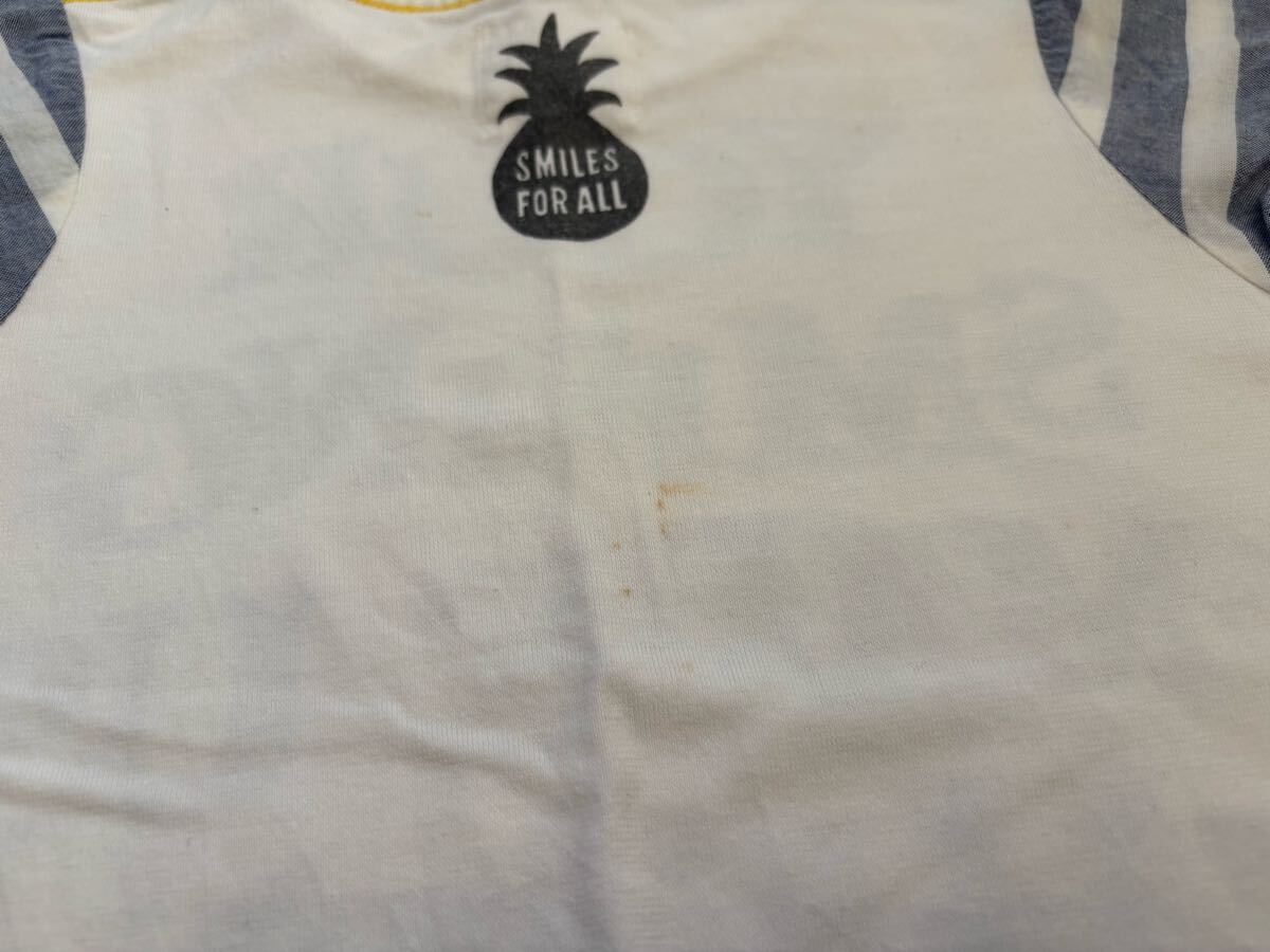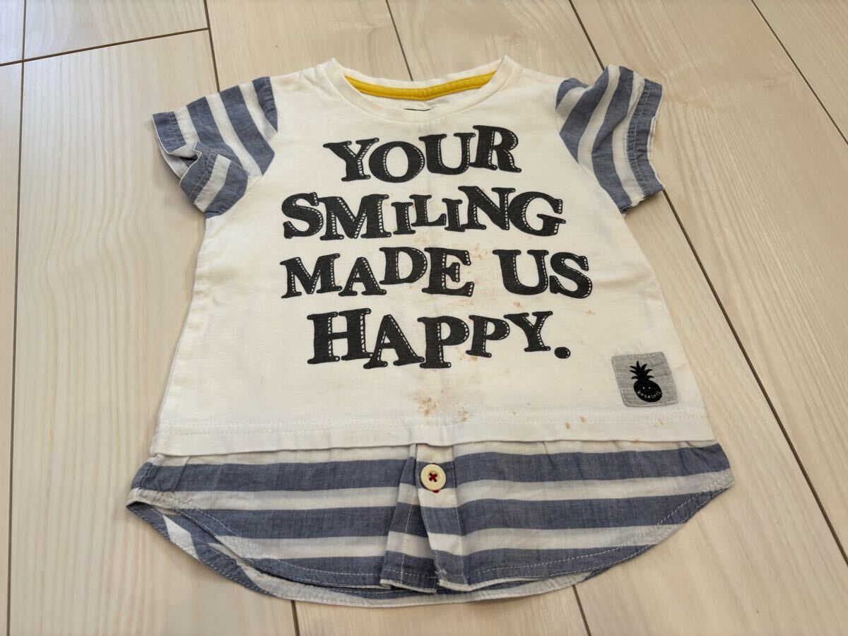 ☆ブランド・・・ブランシェス ☆お色・・・白 ☆サイズ・・・100 平置きの状態で、身幅・・・29cm 着丈・・・34cm 袖丈・・・9cm です。 素人寸法ですので参考程度にお考え下さい。 ☆お袖と裾の部分がボーダー柄の薄手素材になっています。 ☆前身に汚れがあり、後ろにも汚れている箇所があります。 ほつれ等の痛みはありませんが、生地の馴染み、色褪せ等の使用感があるかと思います。 タグにシールを剥がした跡があります。 ご理解の上ご入札下さい。 ☆細かいことをお気にされる方、神経質な方は入札をご遠慮下さい。 ☆自己紹介も必ずお読み下さい。