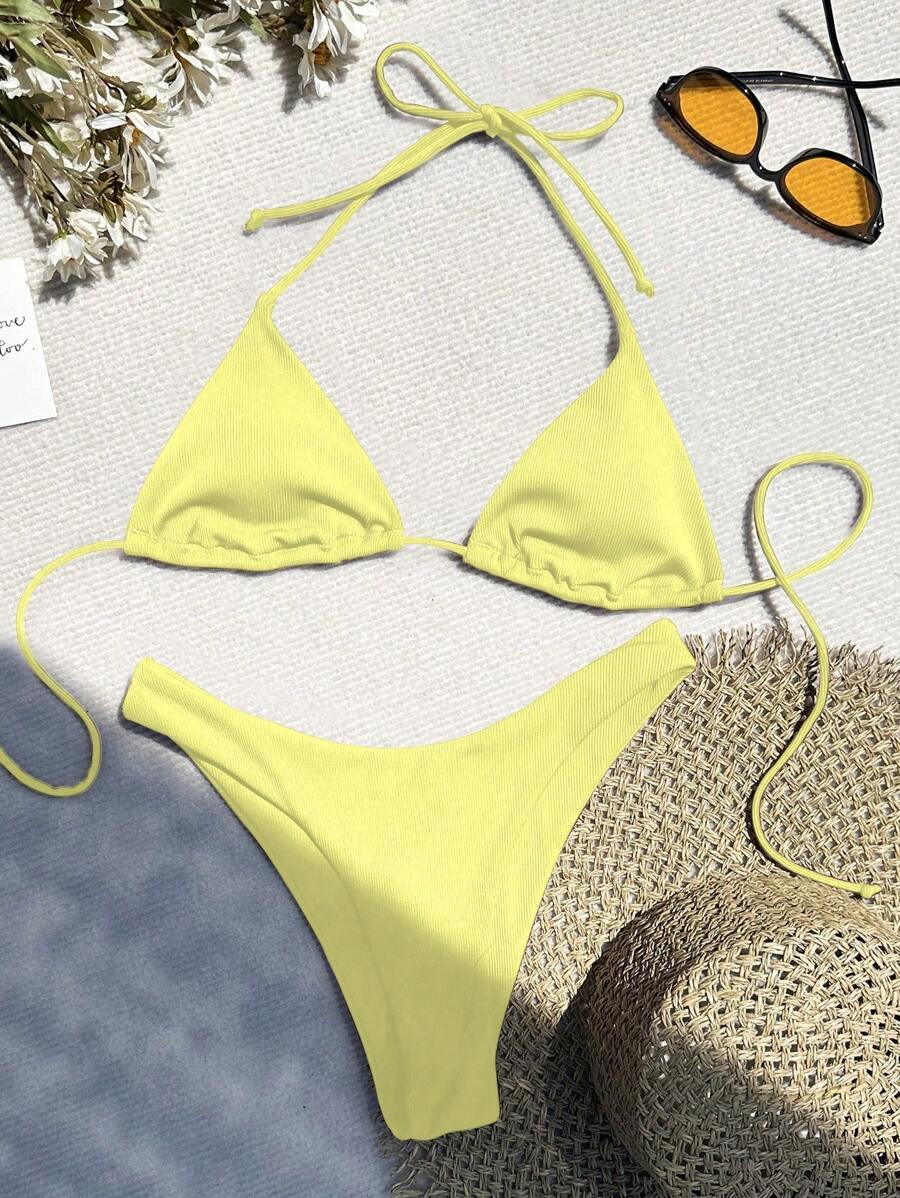 レディース 水着 ビキニセット 夏のビーチ ホルターネック 三角 ハイカット ビキニセット