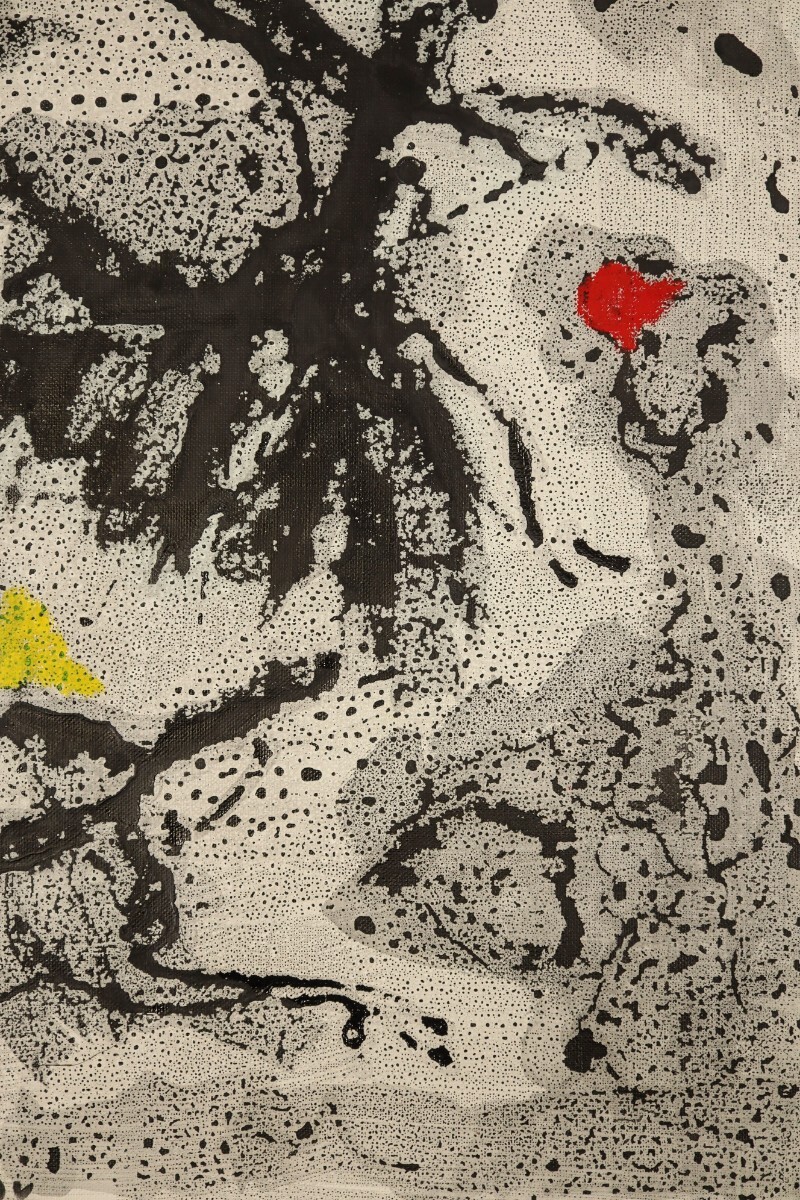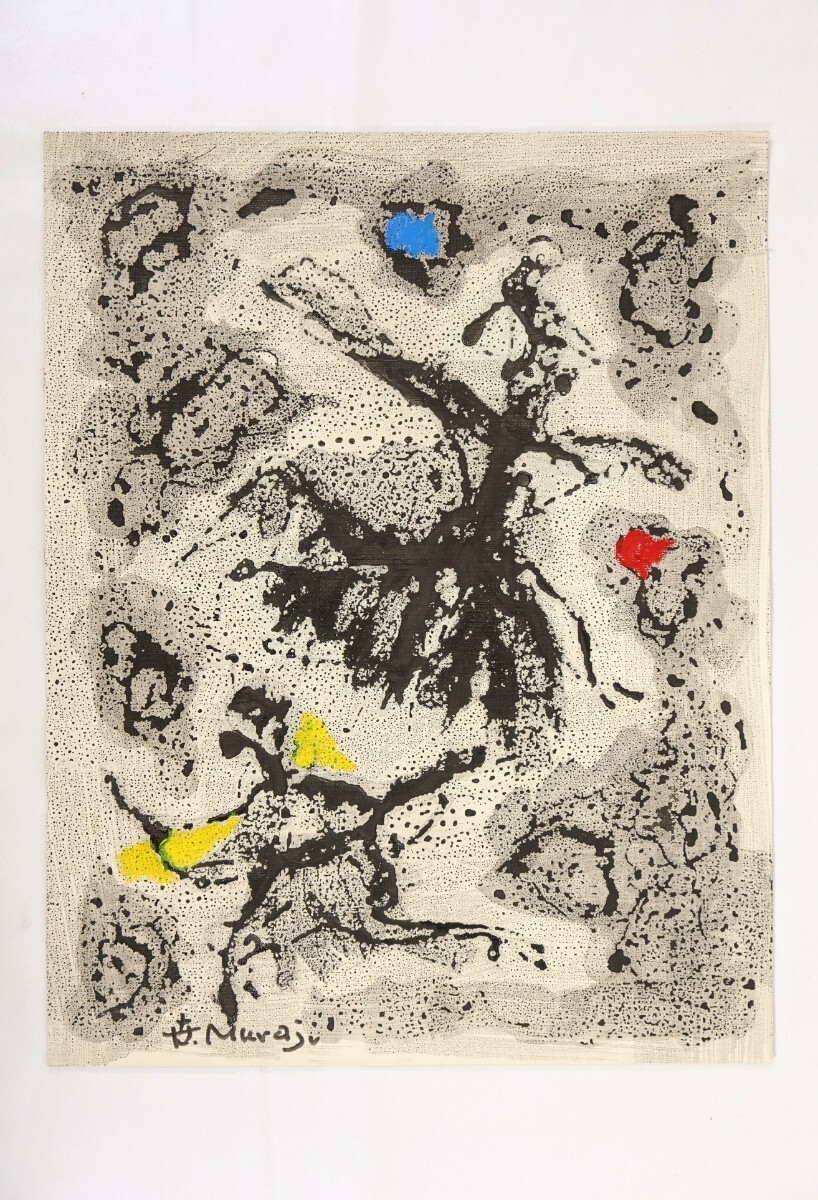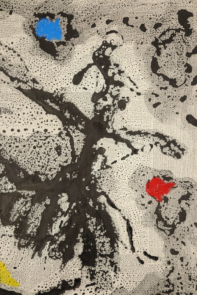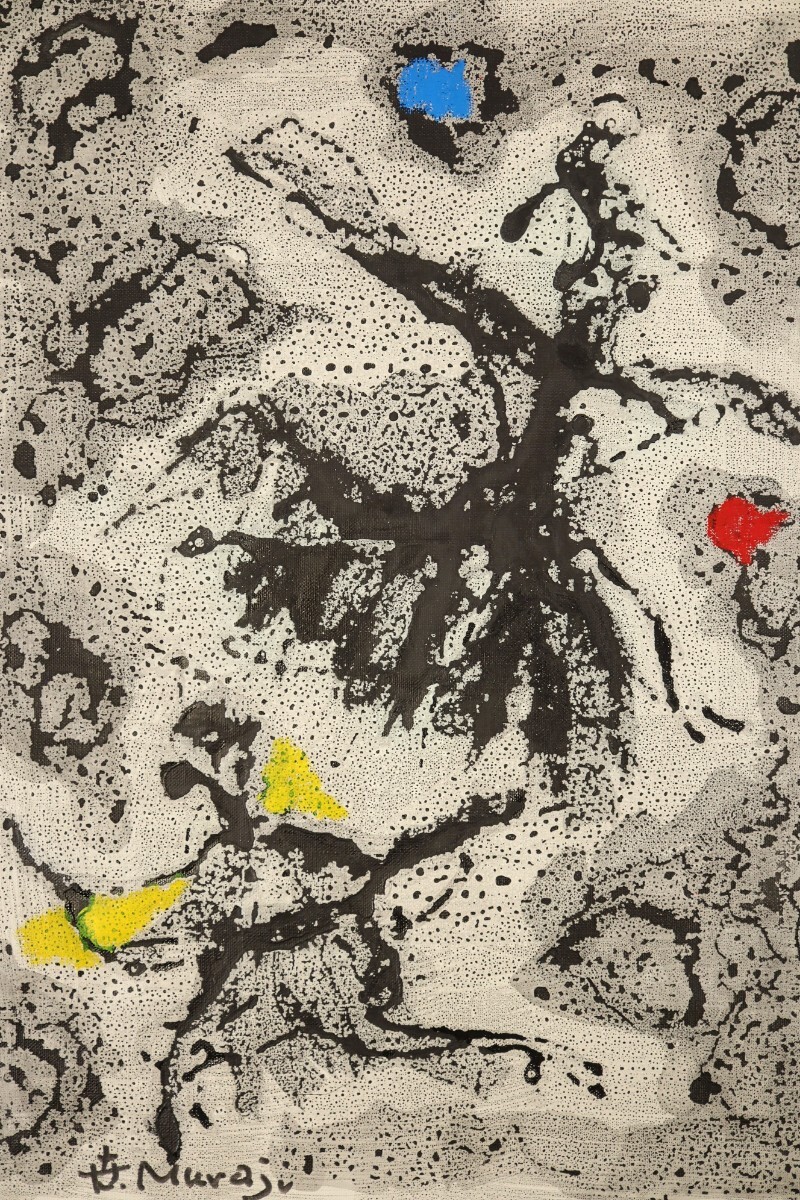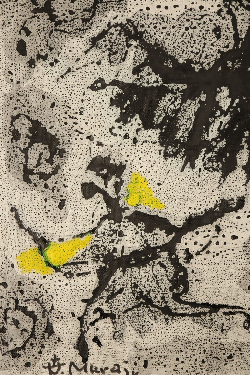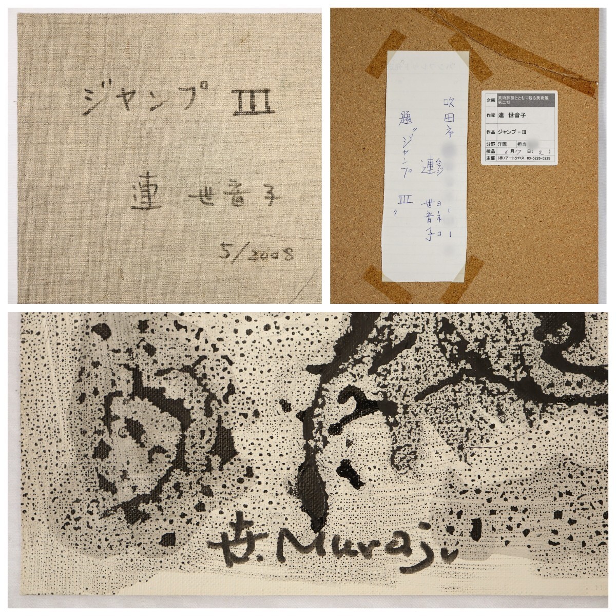 真作 連世音子 2008年5月油彩「ジャンプ III」画寸39.5×50.5cm 大阪府出身 東光会会員 ル サロン会員 ダイナミックで飛び散る黒の線 11111