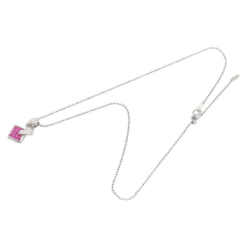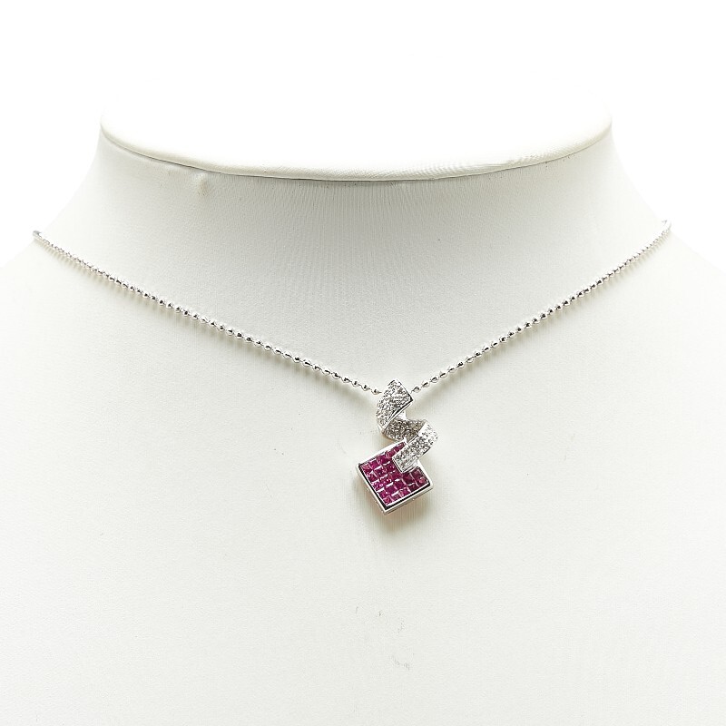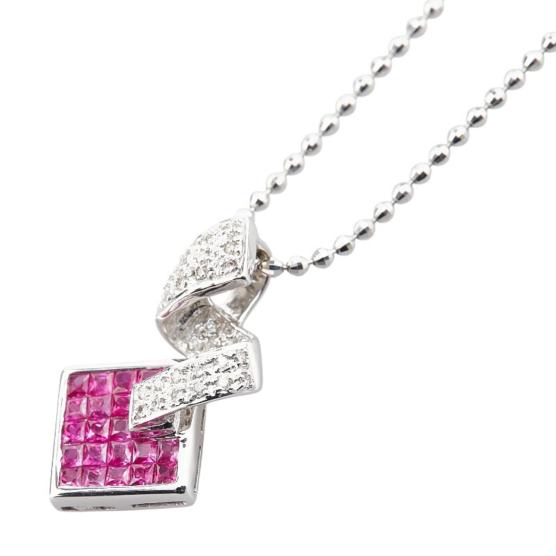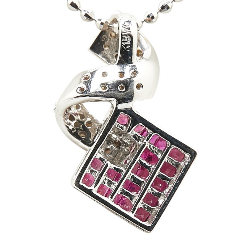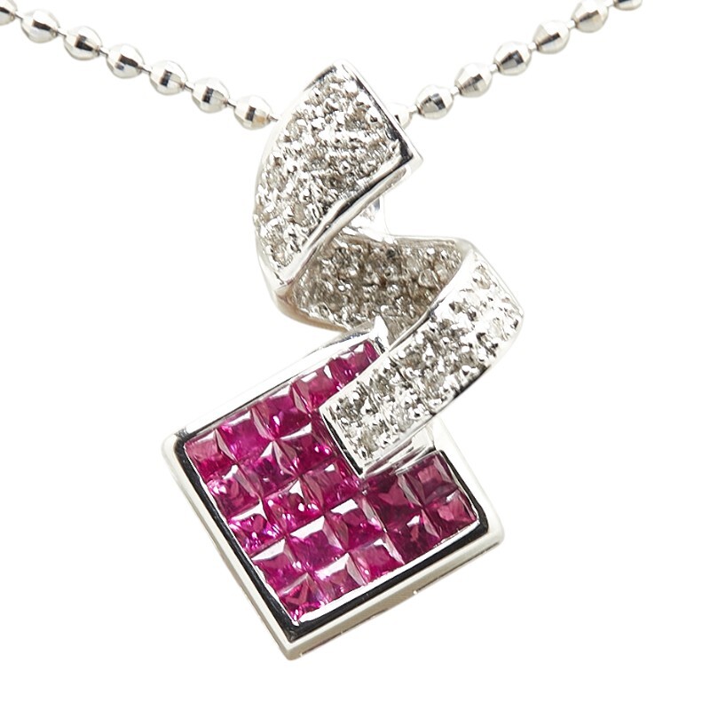 K18WG ホワイトゴールド ルビー0.9ct ダイヤ0.15ct ネックレス レディース 中古
