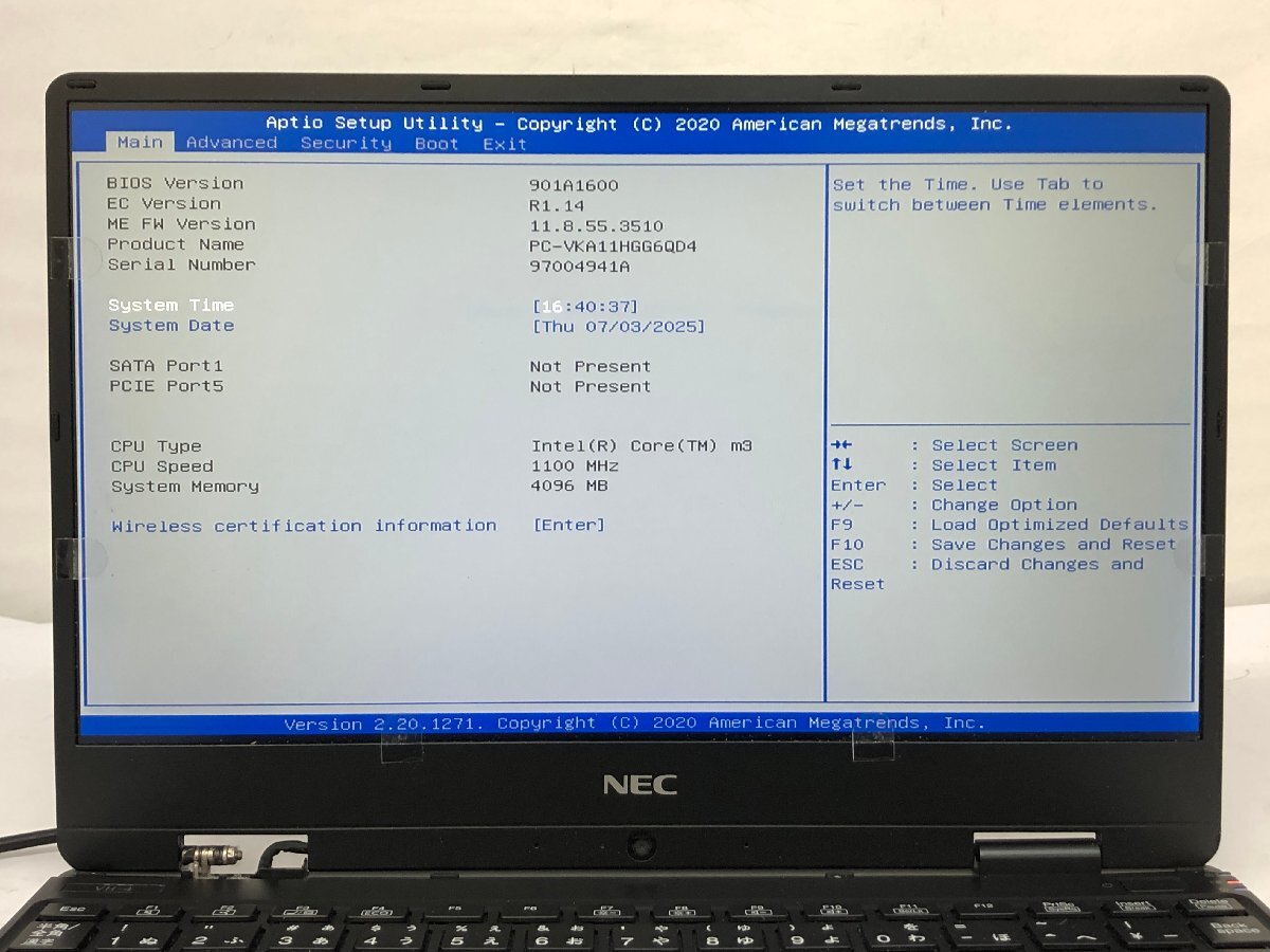 ジャンク/ NEC PC-VKA11HGG6QD4 Intel Core m3-8100Y メモリ4.1GB ストレージ無し 【K17472】
