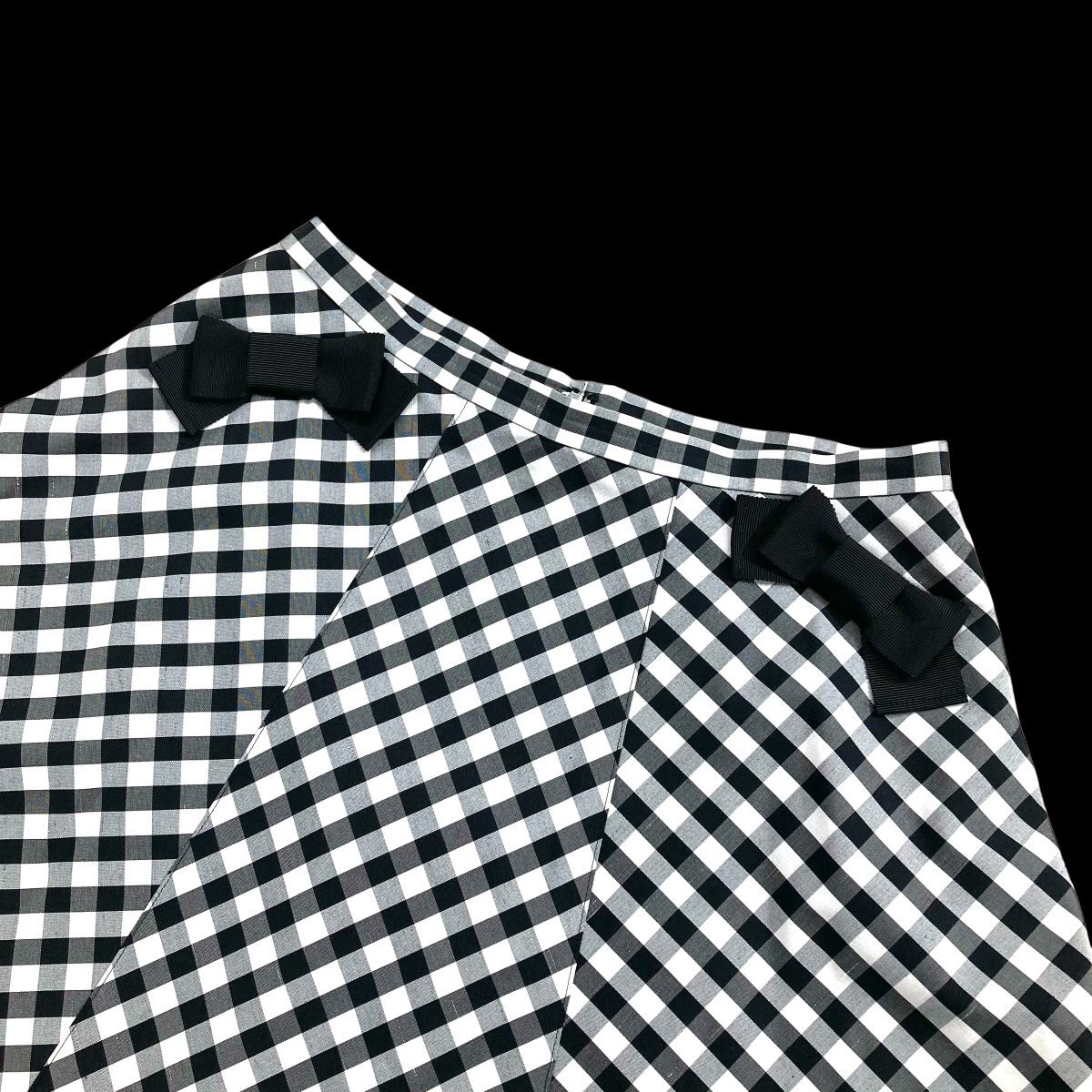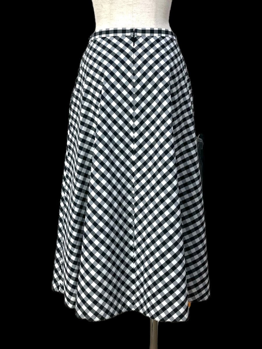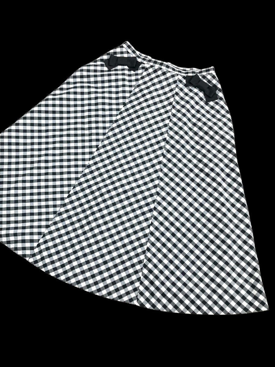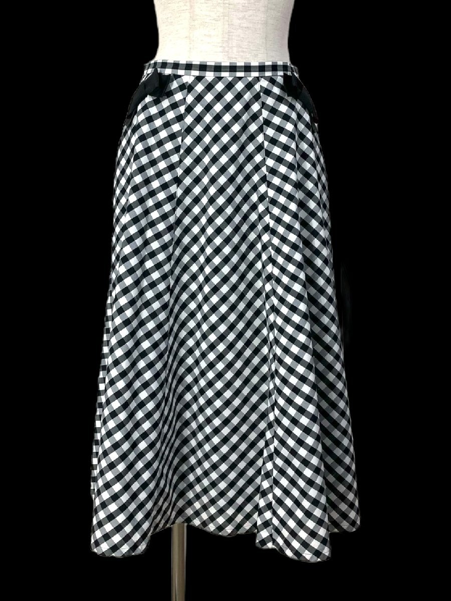 2023美品/カタログ掲載 エムズグレイシー/リボンギンガムチェック柄フレアスカート定価2.8万 38/黒白 sc541
