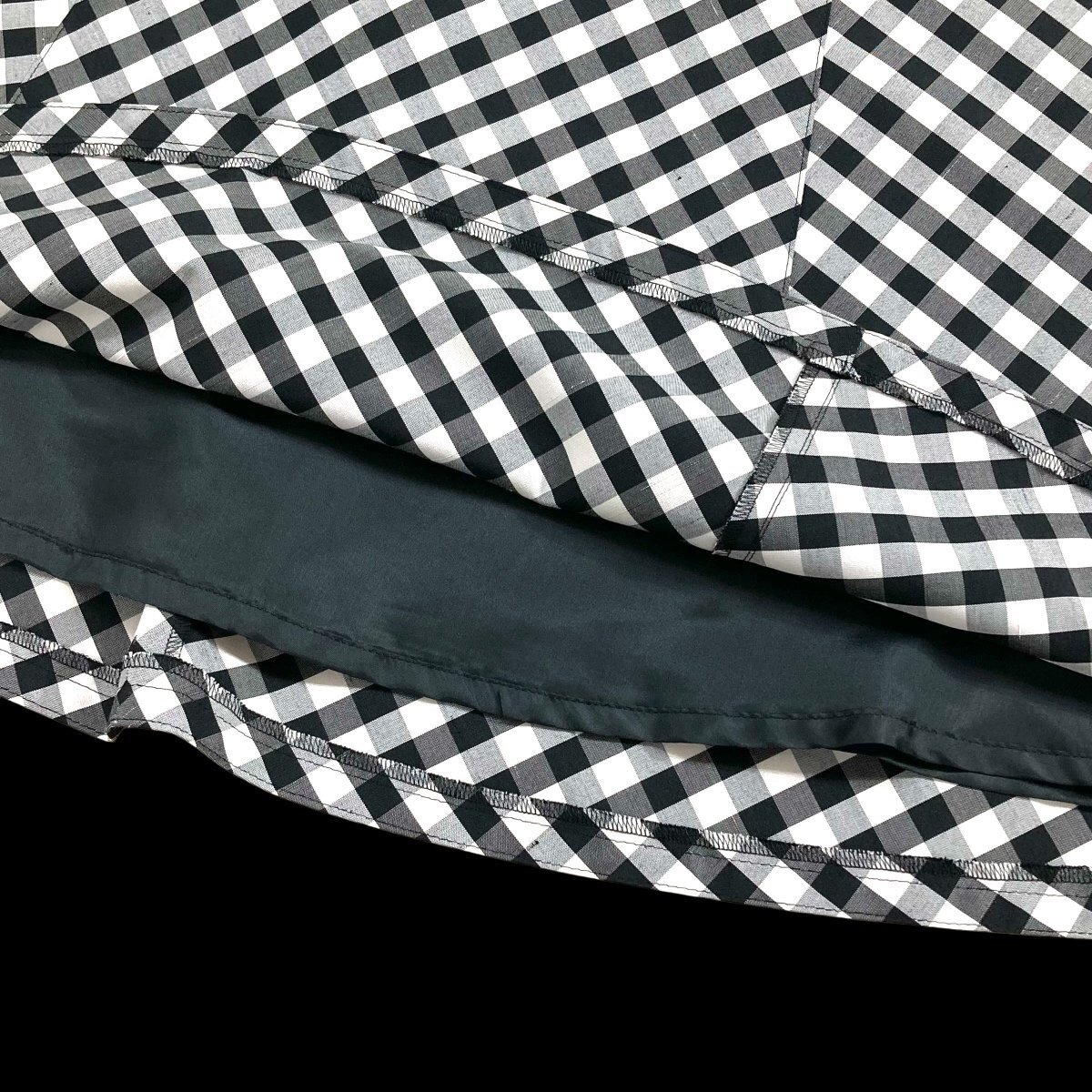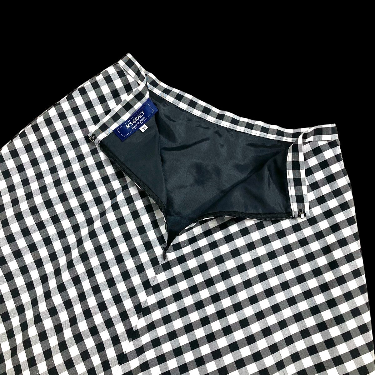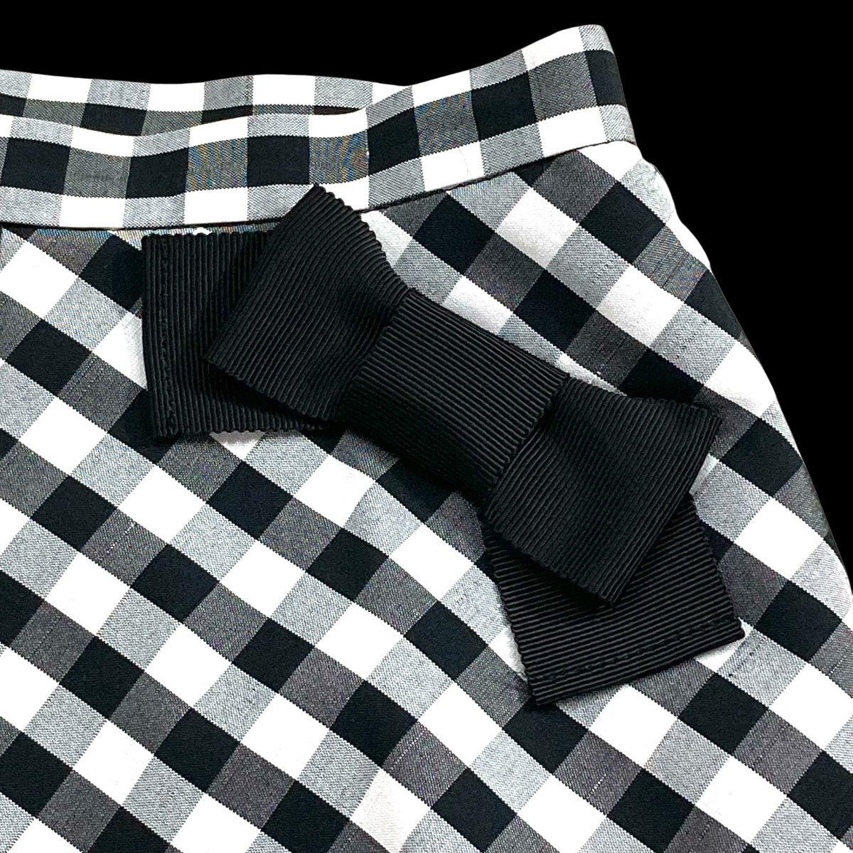 2023美品/カタログ掲載 エムズグレイシー/リボンギンガムチェック柄フレアスカート定価2.8万 38/黒白 sc541