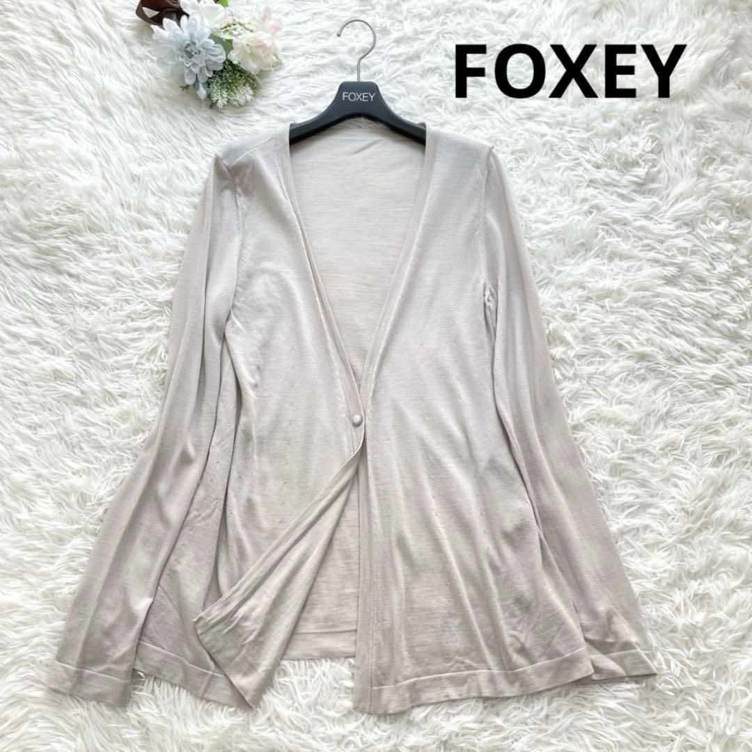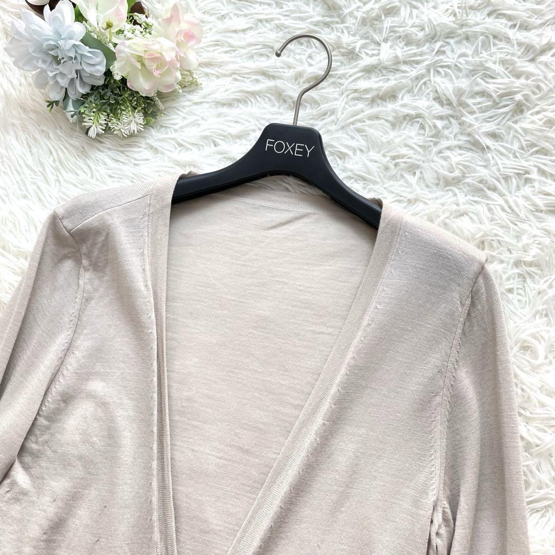 上品なライトベージュカラーで、ワンピースやスカート、パンツスタイルまで幅広くマッチ。着るだけでフォクシーらしい上質感が漂います。