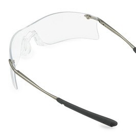 クルーズのセーフティグラス、Rubiconです。つるは金属製で耐久性に優れ蝶番にはバネ蝶番を採用しておりこめかみにフィットする設計となっています。性能、ファッション性にも優れ視覚・耐衝撃性能はもちろんUVカット率99.9%と優れた紫外線対策能力を備えています。目のまわり大きくカバーするデザインにより、広い視界を確保、目の保護を確実にし、レンズには破損しにくい「ポリカーボネイト」を使用しています。