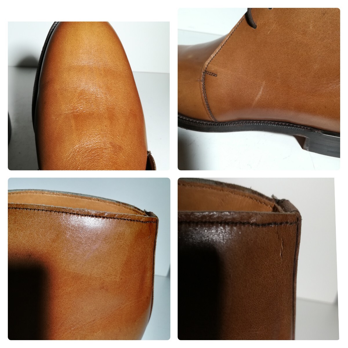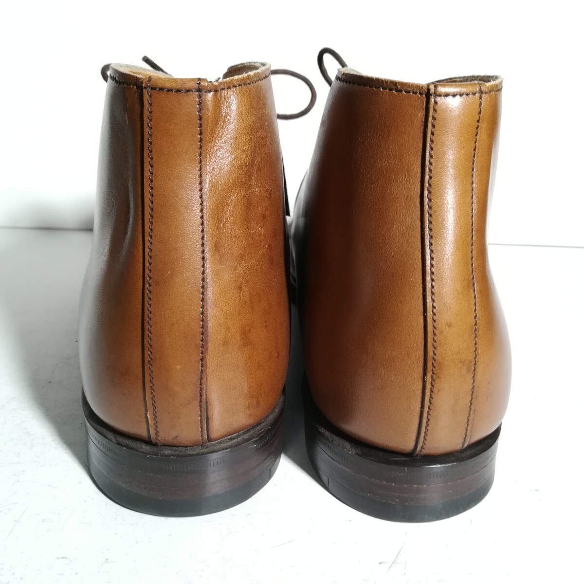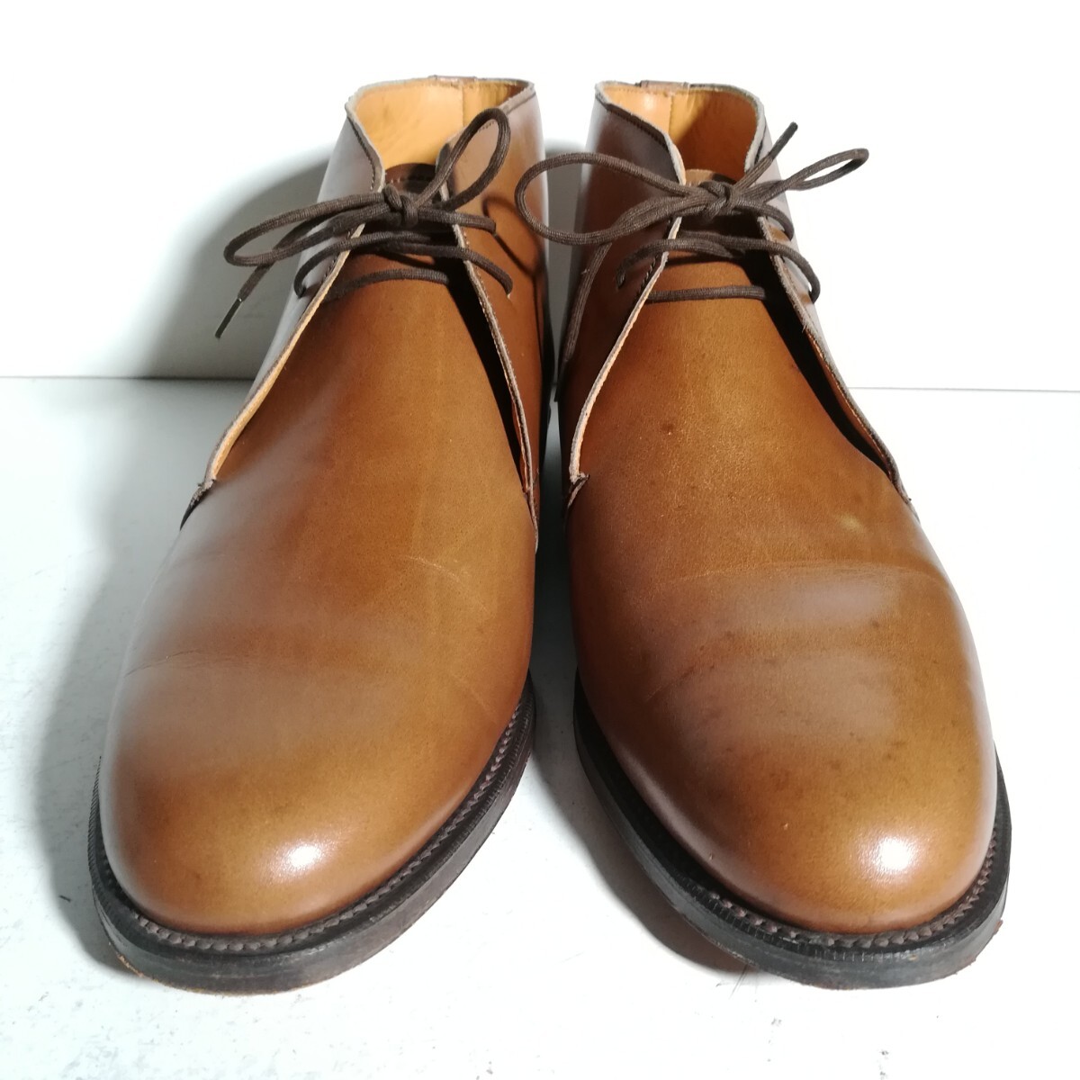 | 商品説明 | 埼玉県からの発送になります。 おてがる配送 宅急便にて発送致します。 発送は落札してから1~3日見ていただければと思います。諸事情により発送が遅れる可能性がございます。 中古品のロイドフットウェア チャッカブーツです。 商品詳細 お色 ブラウン サイズ 8 アウトソール全長約28.9cm 全幅 約10.2cm (素人採寸ですので多少の誤差はご容赦ください) ●状態①「外観」 革鳴り、履き口辺りにヒビ、シミ汚れ、色抜け、汚れ、履きジワ、傷がございます。 ●状態②「ソール・インナー」 ・インソールロゴは綺麗に残っています。 ・踵の削れは1mmもありません。 ●その他・付属等 シューズキーパーや箱、袋といった付属品はございません。 神経質な方はご購入はお控えくださいますようお願い致します。 こちらに重大な過失があった場合のみ返品可(それ以外のサイズ違い等といった理由は不可。) また、お届けしてから1週間以上経過した物についても不可とさせていただきます。上記返品期限経過後の取引ナビ等々からの返品についてのご連絡に関しては対応致し兼ねますのでご了承ください。 出品商品に関しましては他で譲り先が見つかった、在庫処分等の理由で予告無く出品を取り下げる場合もございますので、予めご了承ください。 ※領収書の発行は受け付けておりません。 見落としている傷や汚れ、また中古品などには検品時に気づけないような経年の使用や保管による内部劣化や消耗などがある可能性が御座います。また、シューキーパーを入れて撮影しておりますので実際と印象が異なる場合がございます。 重ねてになりますが、ご理解のある方だけ、ご入札下さいませ。 商品はプチプチに包装して発送致します。スエード素材の商品はプチプチの跡が付く可能性がございますので、ブラシや手で均していただくようお願い致します。 商品写真は撮影時の明るさや光の当たり具合、お使いのディスプレイ(彩度、明るさの設定)等によって、実物の色味と差が生じる場合がございます。 また、当方は素人ですので予めご了承ください。 他にも様々出品しておりますので、どうぞご覧ください ↑↑↑↑↑↑↑↑↑↑↑↑↑↑↑↑ ■決済金額・決済方法■ 【決済金額】 落札価格+送料が決済金額となります。 【決済方法】Yahoo!かんたん決済(クレジットカード、コンビニ、銀行振込、PayPay等々)にてお支払いください。 ○ご決済(ご入金)確認後なるべく速やかに発送いたします。(諸事情により遅れる場合がございます。) Yahoo!かんたん決済お支払い期限内にお支払いお願い致します。 ご落札頂いた際にこちらから連絡をすることは基本的にはございません。重要な連絡事項がある場合はご連絡しますのでよろしくお願い致します。 ●お問い合わせ等、気づかないことがあり即答できない場合がありますので、あらかじめご了承ください。 直接お取引やご対応、電話でのお取引やご対応は致しかねております。 以上の内容をご理解して頂いた方のみ入札下さい。 埼玉県公安委員会古物商許可衣類商 (写真機類・事務機器類・道具類・機械工具類・皮革ゴム類) 第431070035500号 |