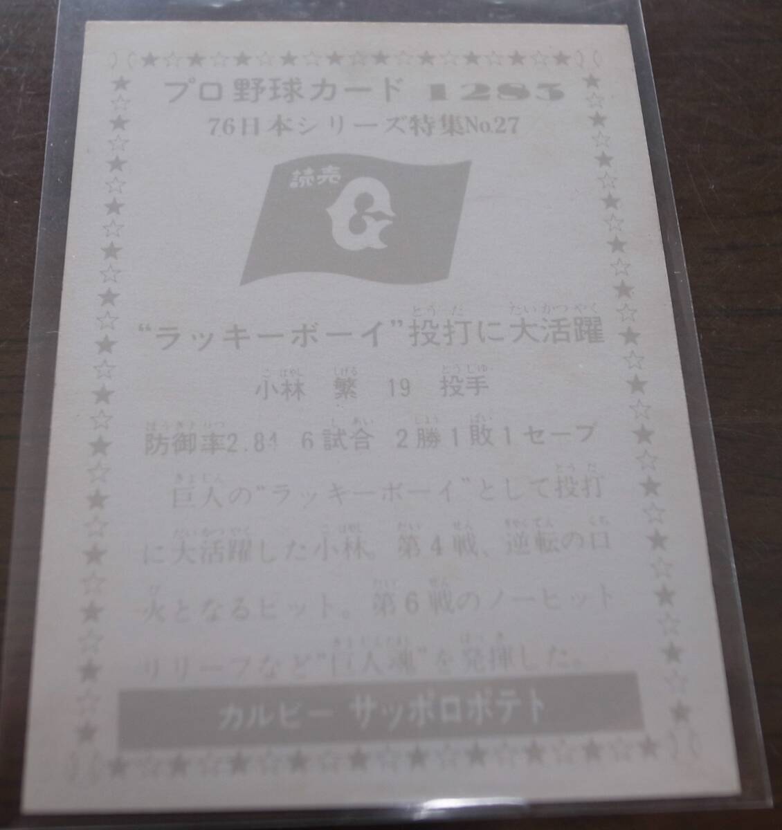 ■カルビープロ野球カード1976年/No1283/’76日本シリーズ特集No27/小林繁/巨人 | ||
