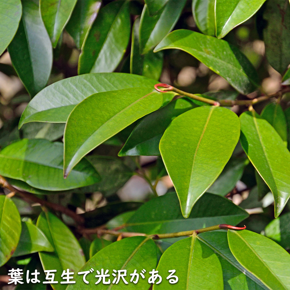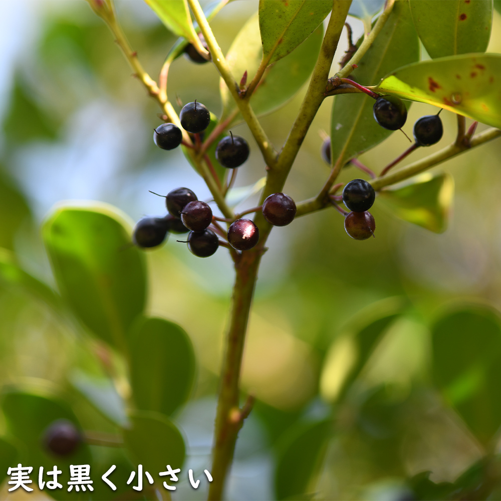 サカキの枝は昔から神事の際に用いる玉串として利用されてきました。今でも神棚にあげるのに使用されます。葉は厚みがあり深緑色で光沢があります。初夏に小さな黄色い花をつけます。秋から冬にかけて種が黒紫色に熟します。