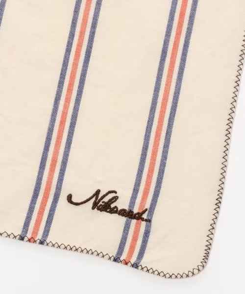niko and... ニコアンド オリジナル 先染め ストライプ柄 ハンカチ (ナチュラル) ロゴ刺繍 大判ハンカチ 綿100%