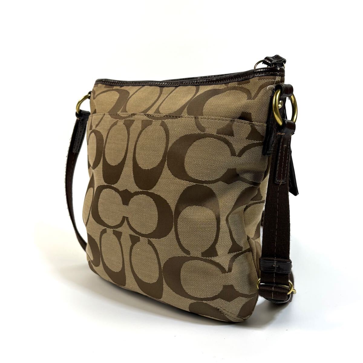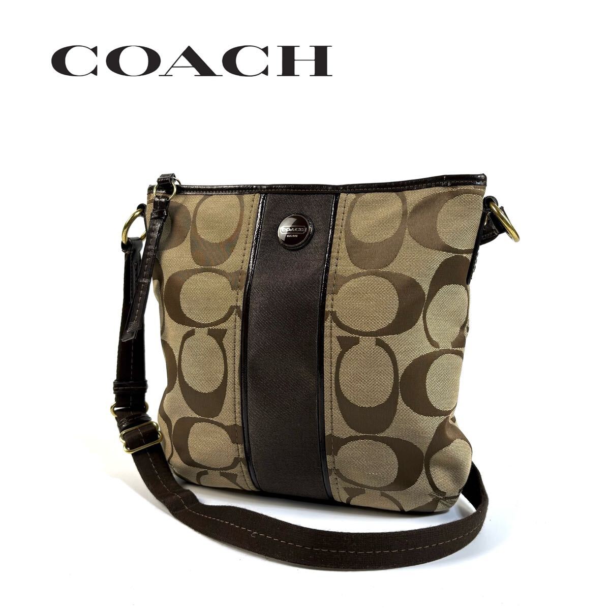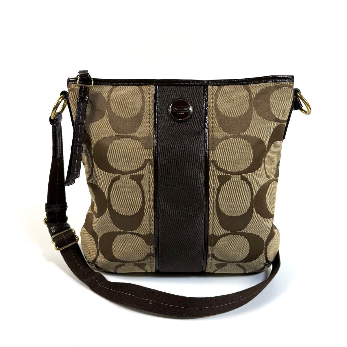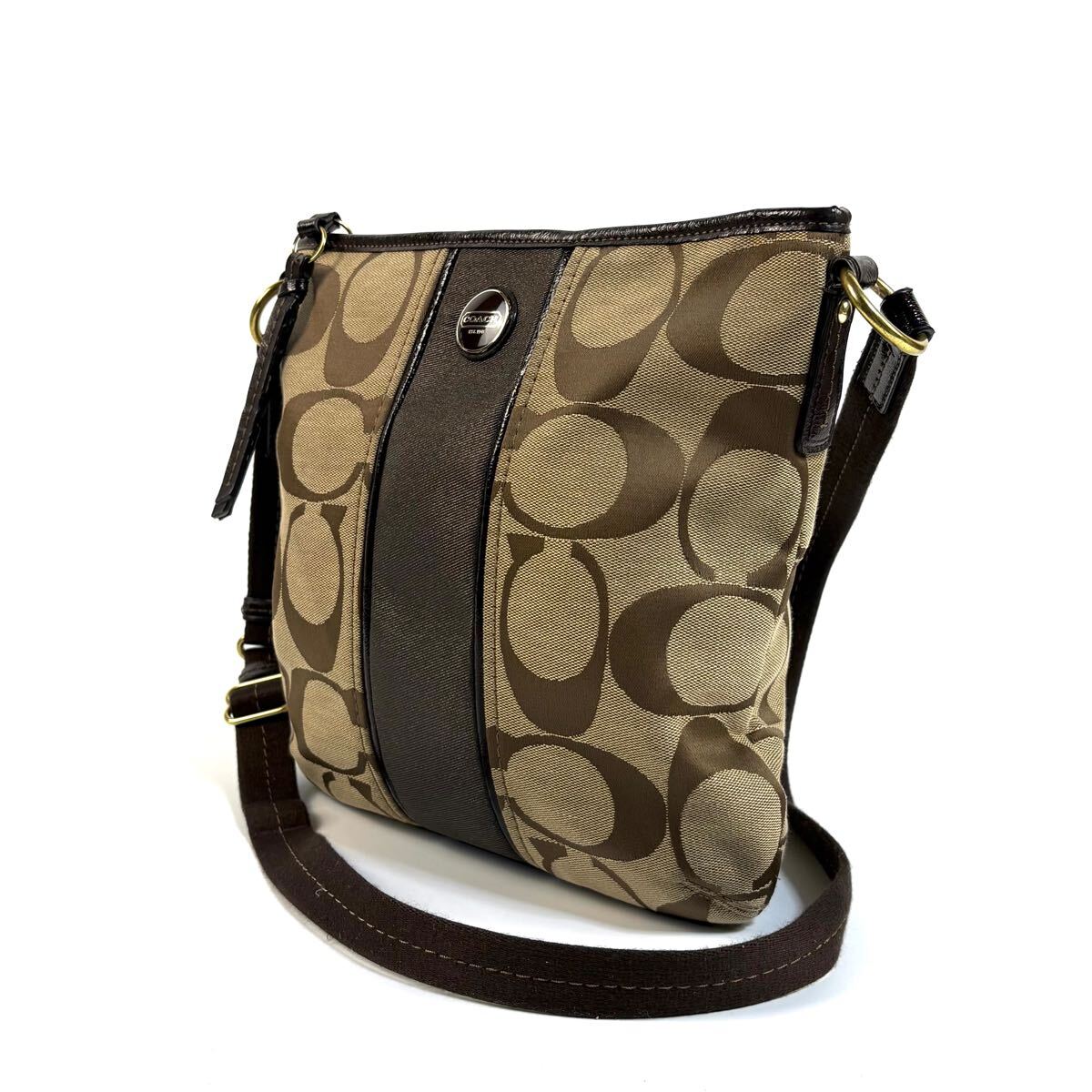 | 【美品】COACH コーチ キャンバス レザー 斜め掛け クロスボディ ショルダーバッグ シグネチャー ブラウン ベージュ |