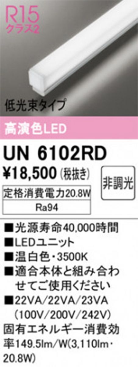 LEDライトバー 3500K 温白色 非調光 本体別売 オーデリック UN6102RD