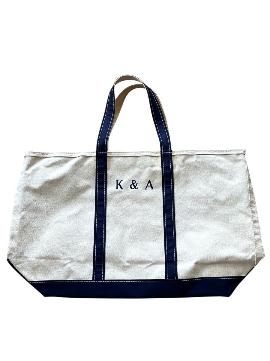 ●●vintage us製 L.L.Bean エルエルビーン ジップトートバッグ 白x紺 K&A●●