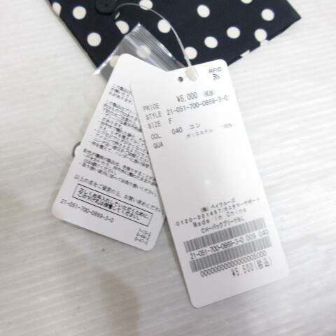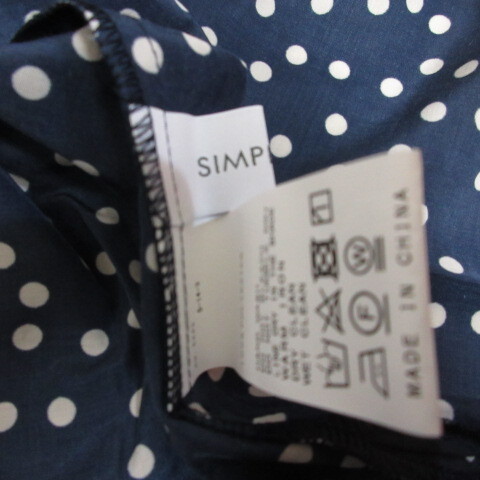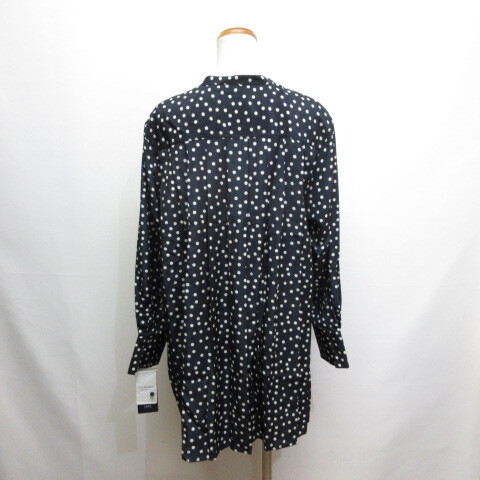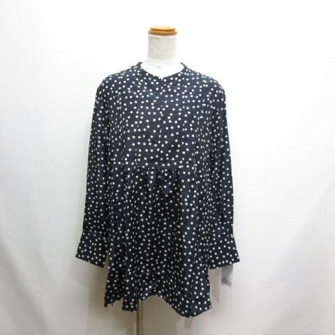未使用品 シンプリシテェ SIMPLICITE ドット柄 長袖 チュニック ブラウス F ネイビー バックプリーツ タグ付き レディース