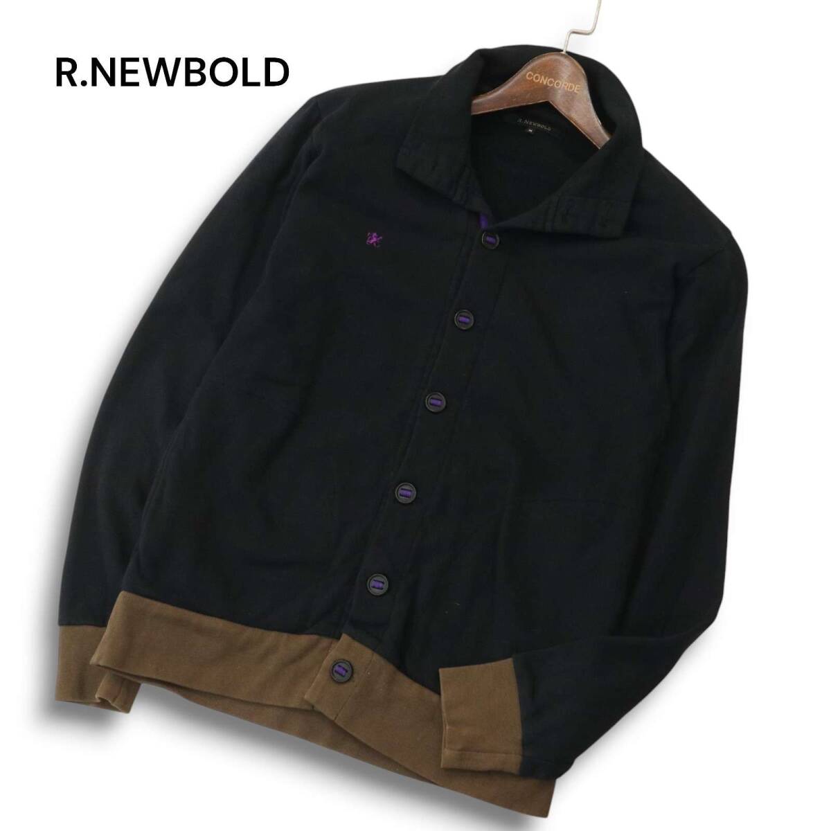 R.NEWBOLD ポールスミス 通年 ロゴ刺繍★ 袖裾切替 スウェット スタンドカラー カーディガン ジャケット Sz.M メンズ 黒