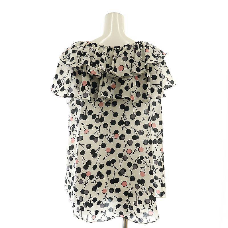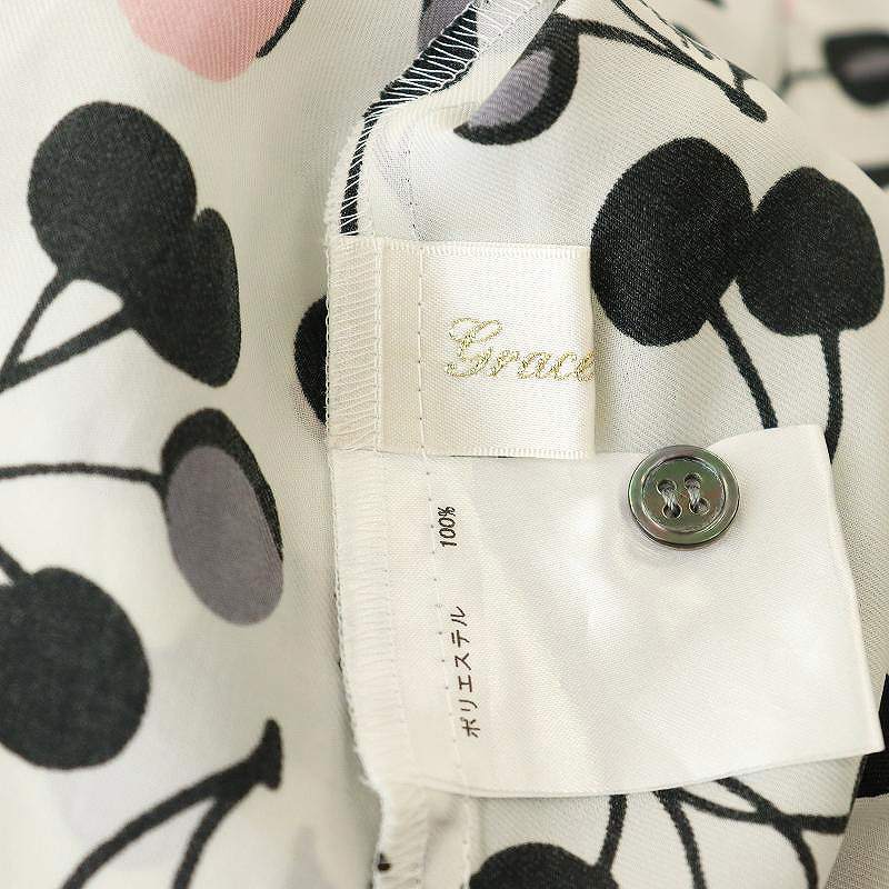 グレースクラス GRACE Class チェリープリントラッフルノースリーブ ブラウス 総柄 38 白 ホワイト /AT ■OS ■SH レディース